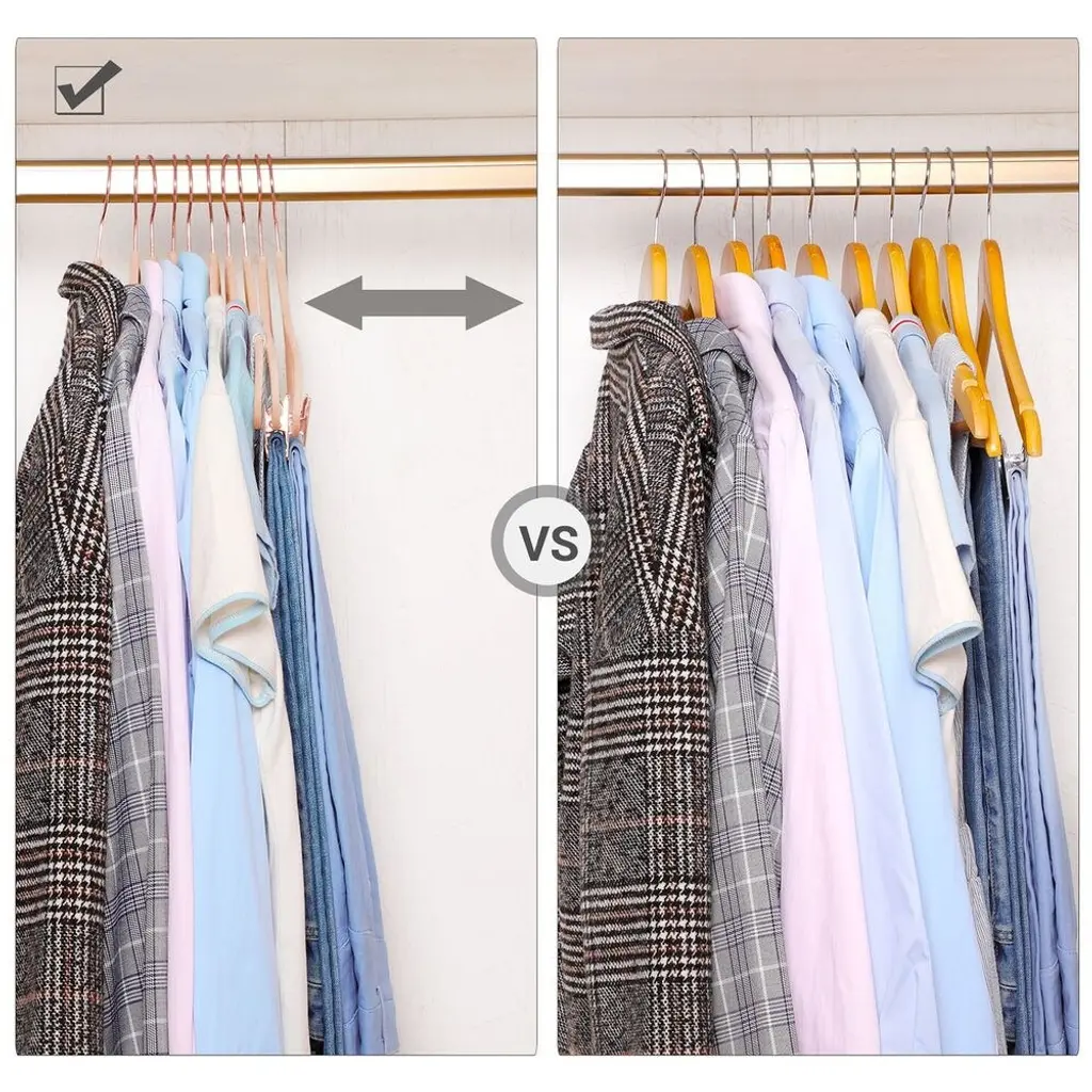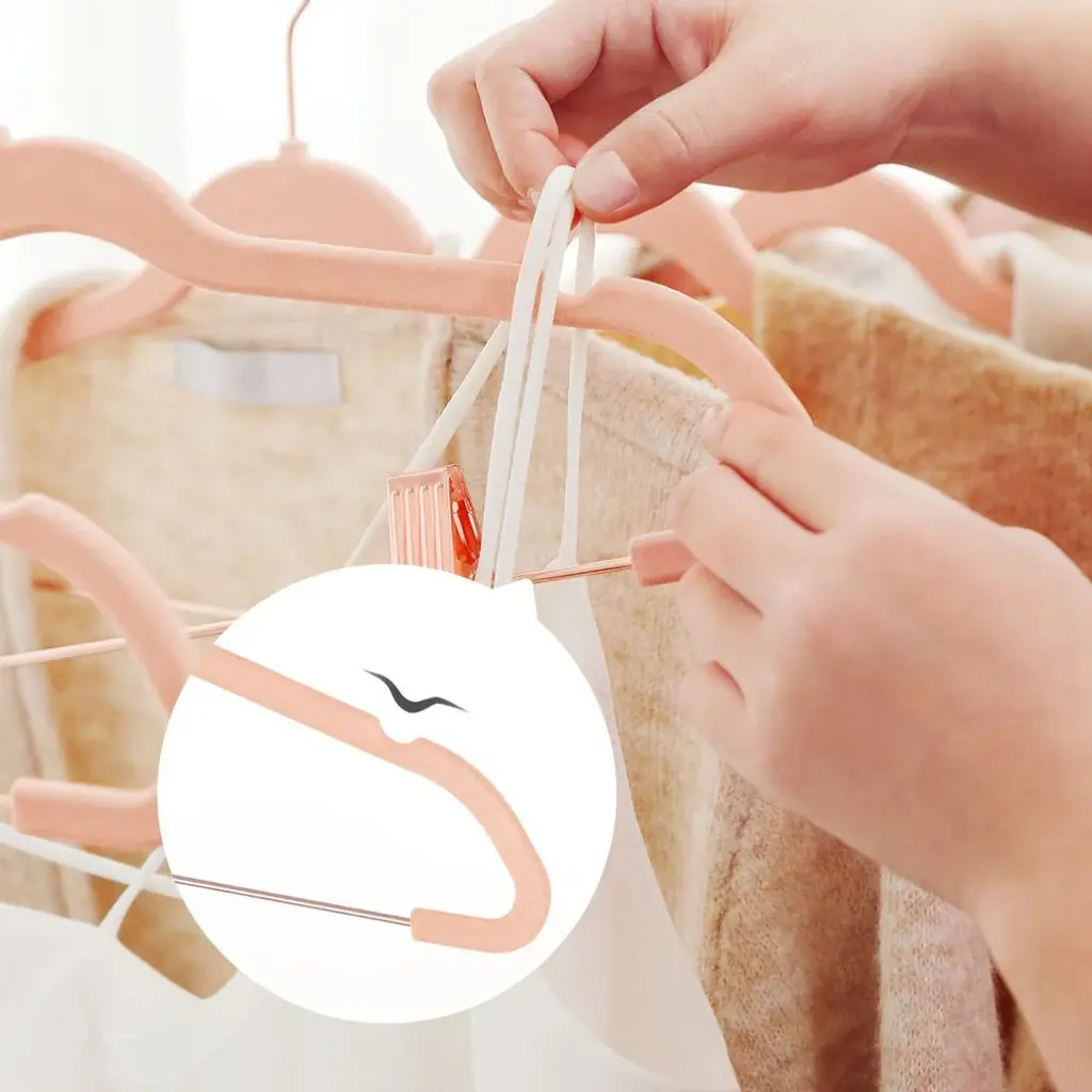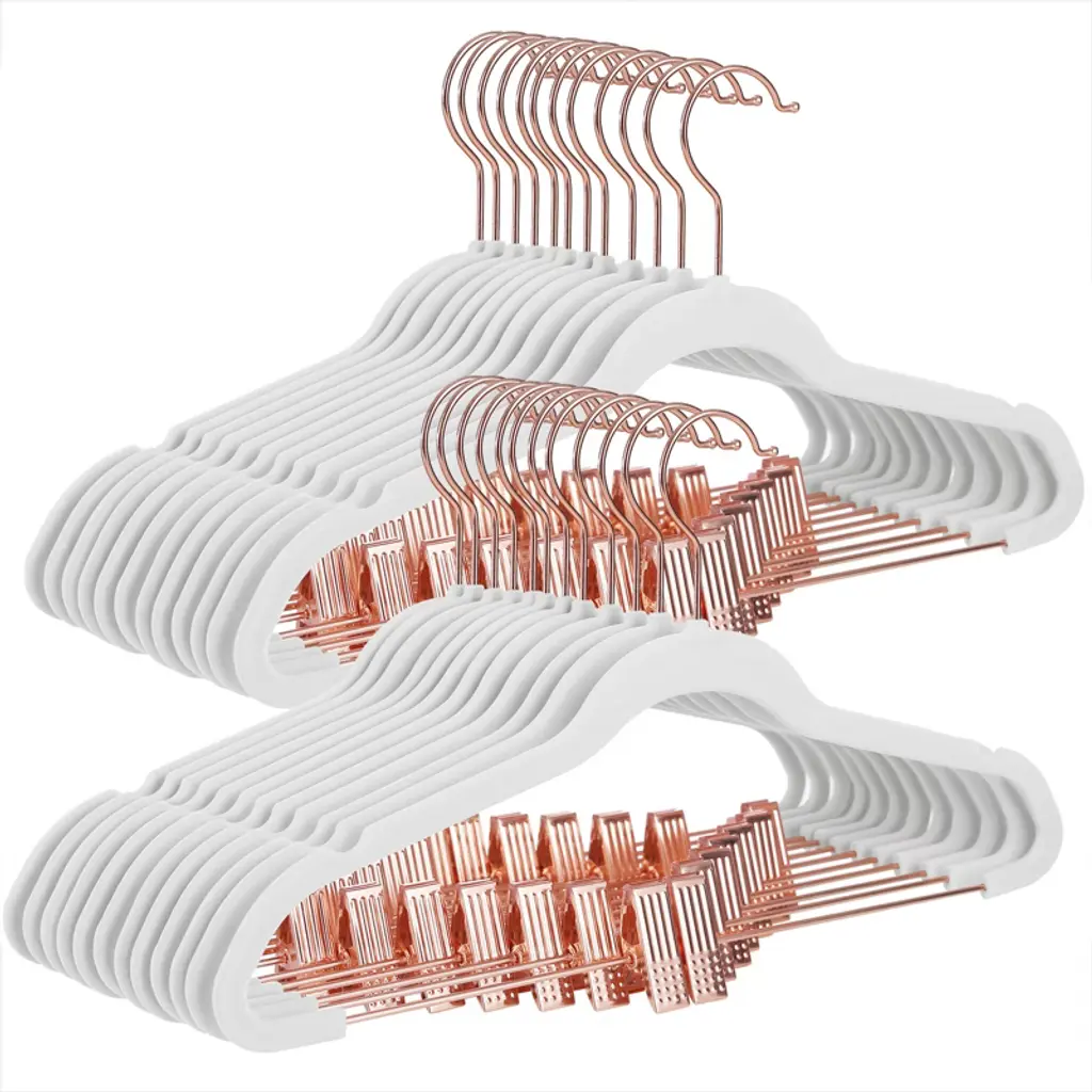 Light Pink Plastic Space Saving Clothes Hangers With Rose Gold Movable Clips - 16.7"l X 0.2"w X 9.3"h - Rose-Gold-Light-Pink