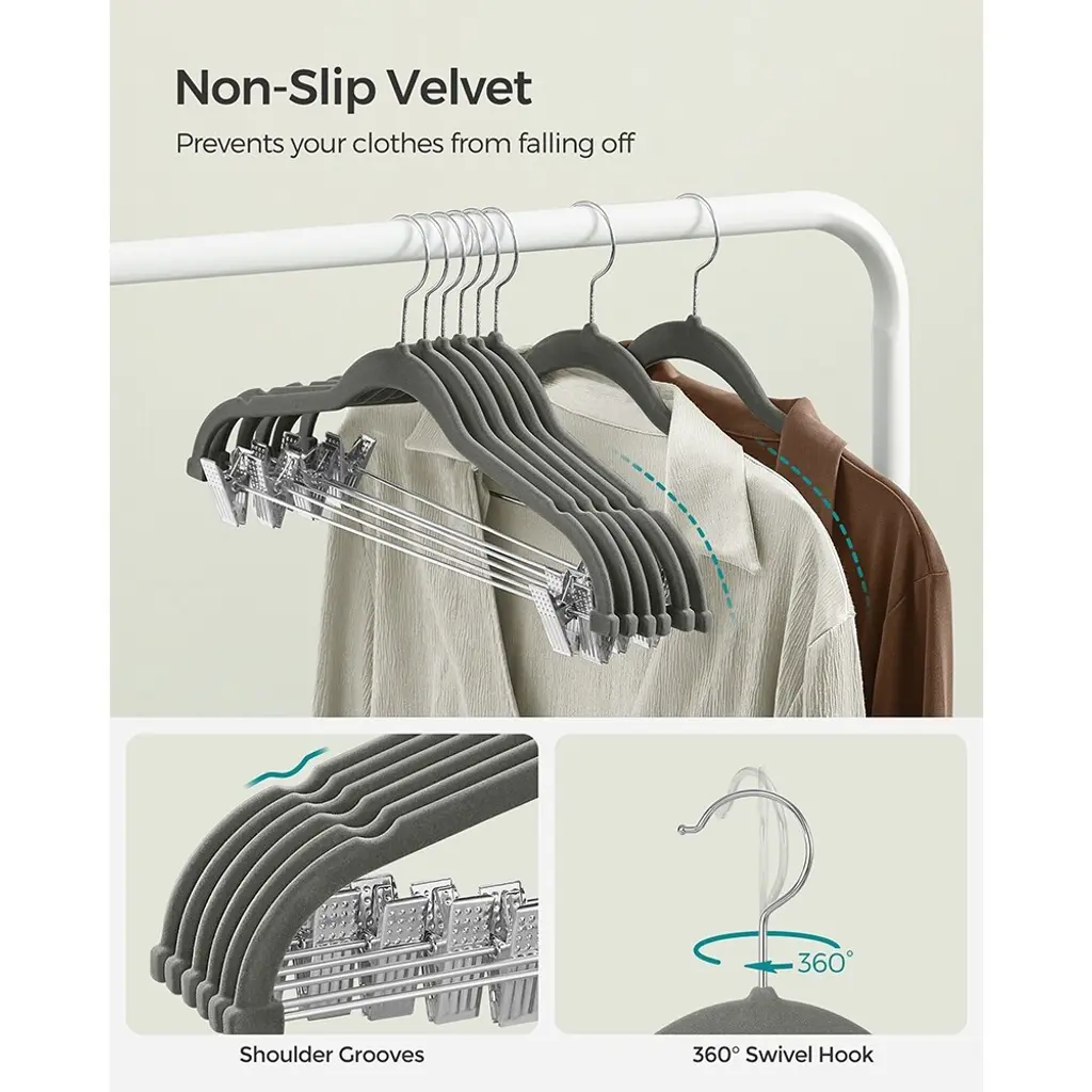 Modern Plastic Non-Slip Velvet Clothes Hangers With 2 Adjustable Clips Suitable For Trousers And Skirts - 20-Pack - Grey