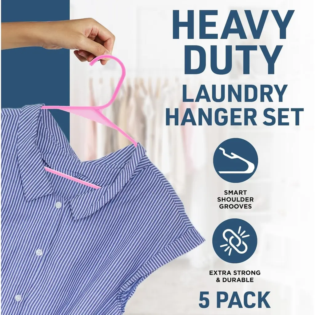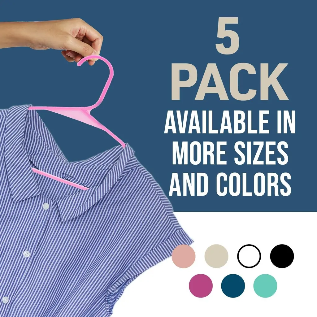 Plastic Clothes Hangers – Heavy Duty Hanger Set, For Organizing Clothes, Dresses, And Coat, Holds Up To 5 Lbs - Pack Of 5 - Pink