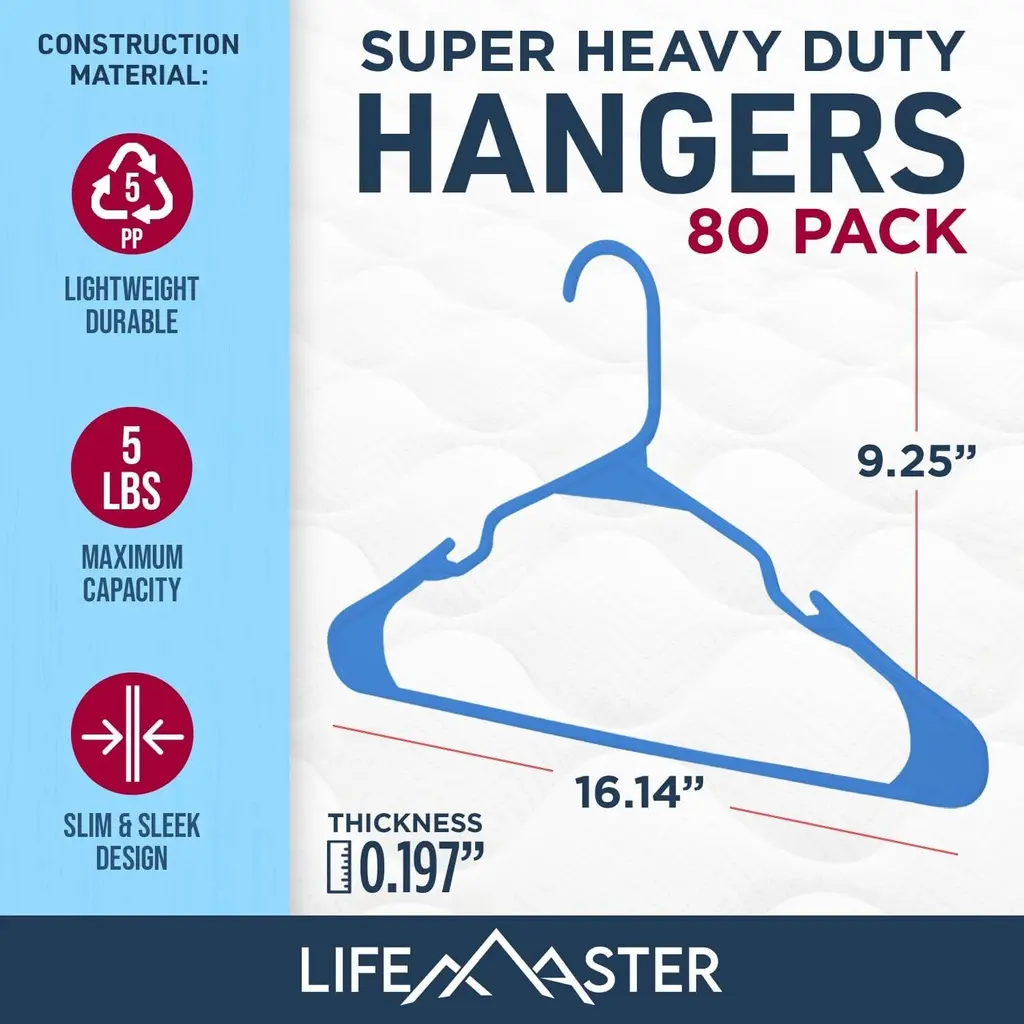 Plastic Clothes Hangers – Heavy Duty Hanger Set, For Organizing Clothes, Dresses, And Coat, Holds Up To 5 Lbs, Space-Saving - Pack Of 80
