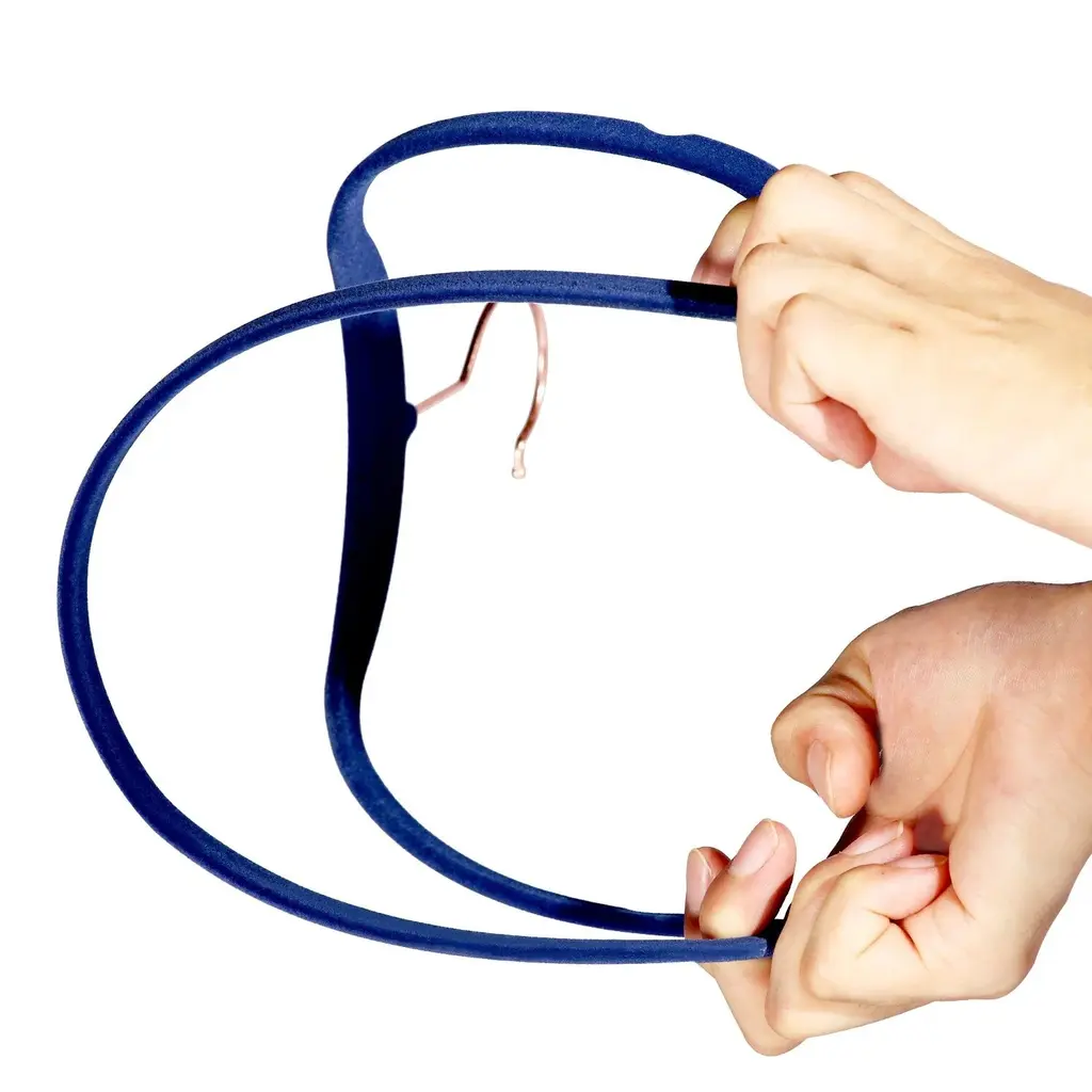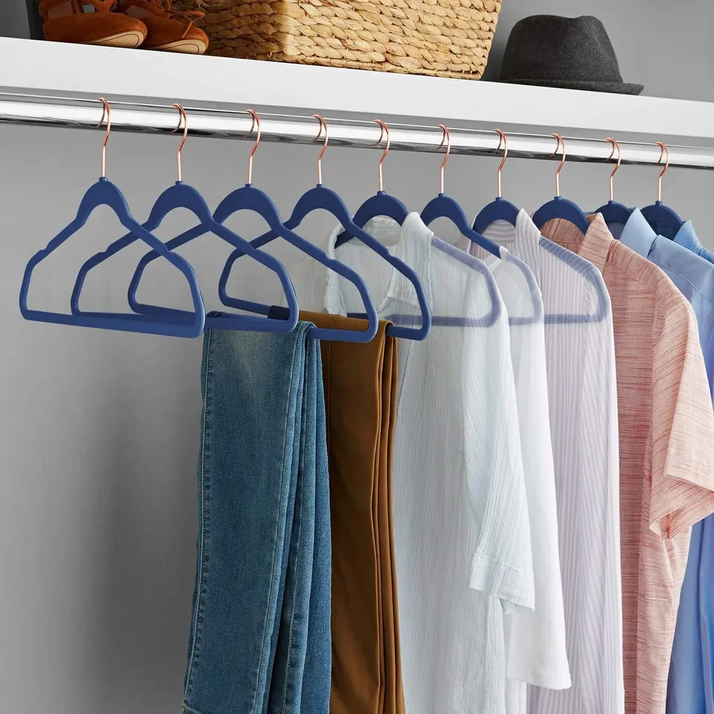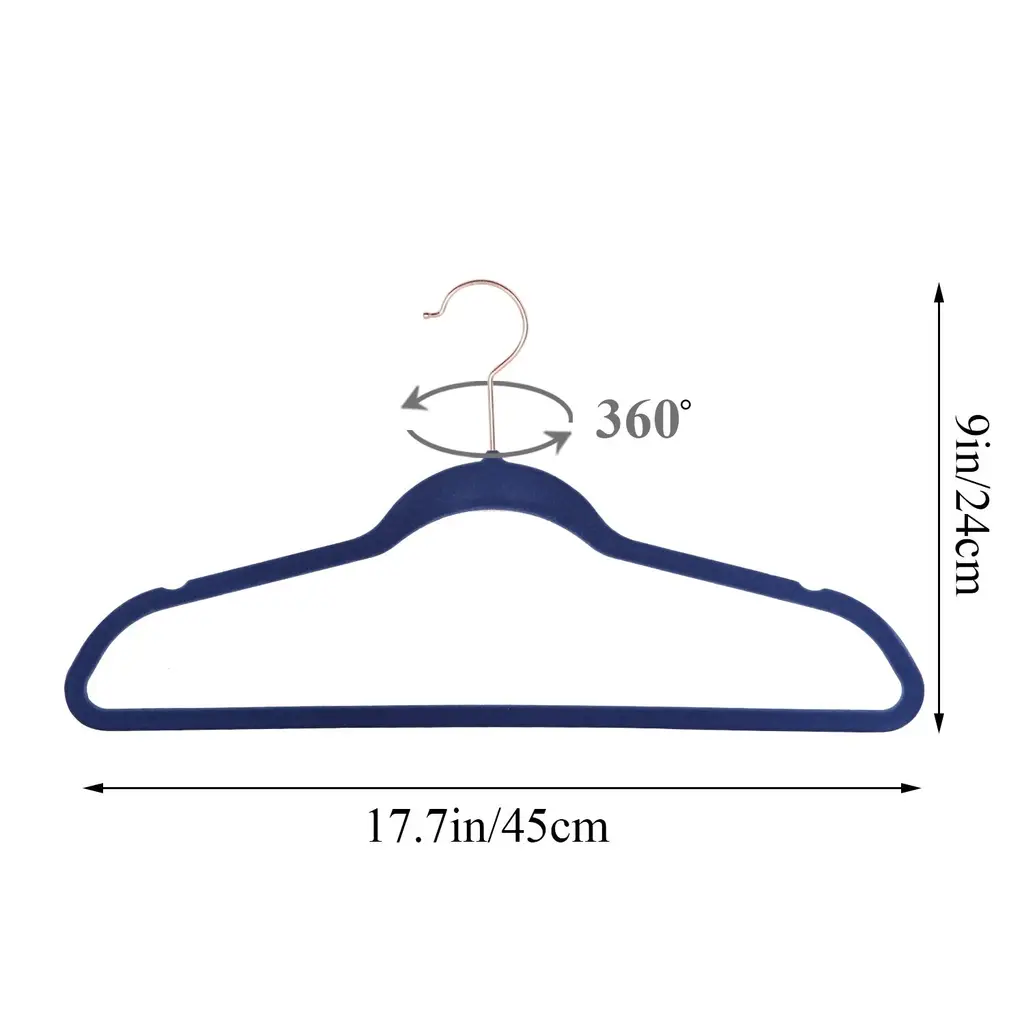 These space-saving cascade hangers are slim and durable, maximizing the storage space in your closet. They are sturdy and lightweight velvet hangers, perfect for commercial and home use. The non-slip velvet hangers are designed to prevent slipping of your garments. They are great for holding your pants, shirts, dresses, and accessories. 360° Swivel hook makes it easy to organize your clothes. Features:Advantages:Specifications:Standard Size: (LxWxH) 17.7" x 0.2" x 9.3"Colors Available: BlueSet Options: 30 Pack/ 50 Pack/ 60 Pack / 100 Pack
