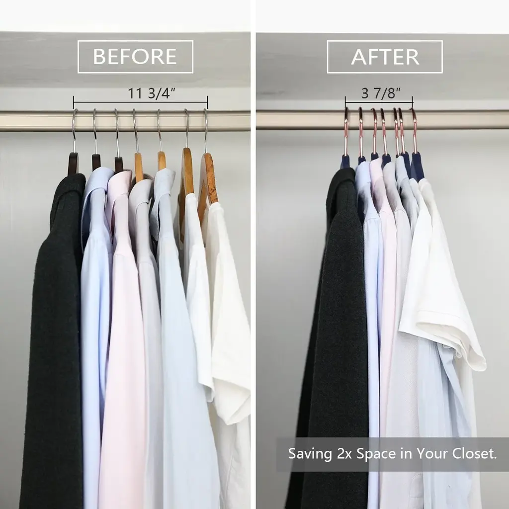 These space-saving cascade hangers are slim and durable, maximizing the storage space in your closet. They are sturdy and lightweight velvet hangers, perfect for commercial and home use. The non-slip velvet hangers are designed to prevent slipping of your garments. They are great for holding your pants, shirts, dresses, and accessories. 360° Swivel hook makes it easy to organize your clothes. Features:Advantages:Specifications:Standard Size: (LxWxH) 17.7" x 0.2" x 9.3"Colors Available: BlueSet Options: 30 Pack/ 50 Pack/ 60 Pack / 100 Pack
