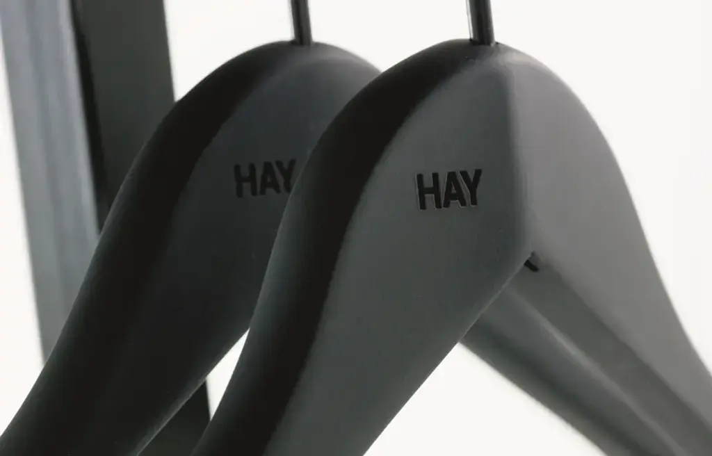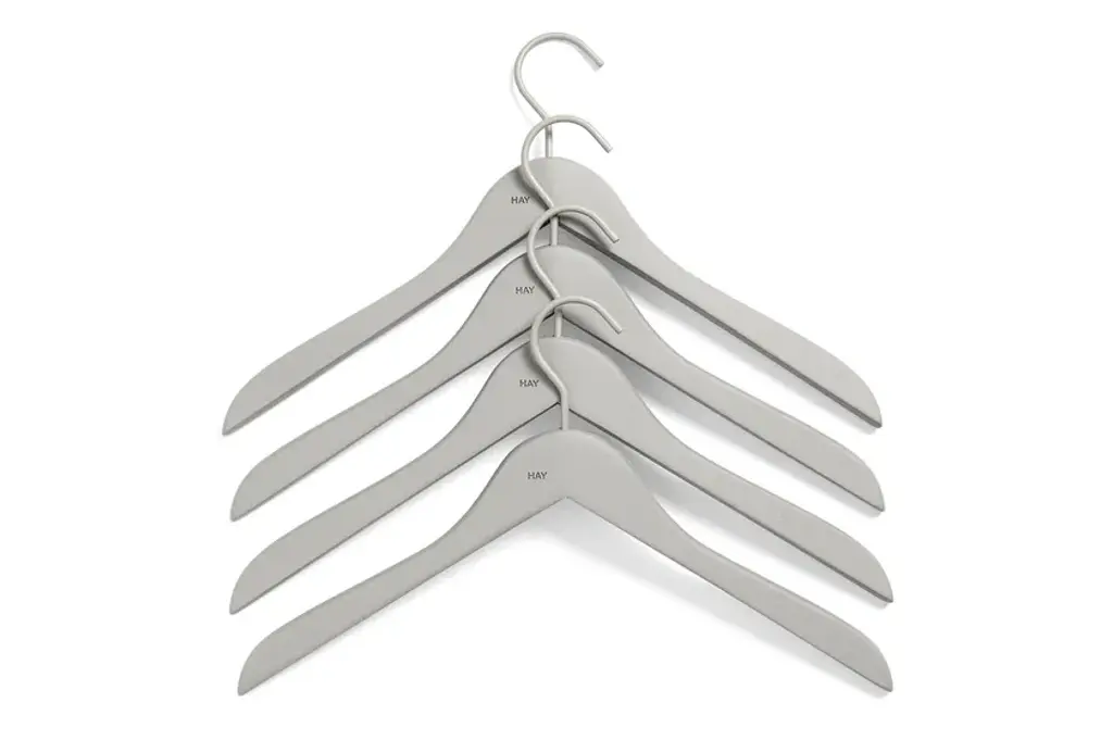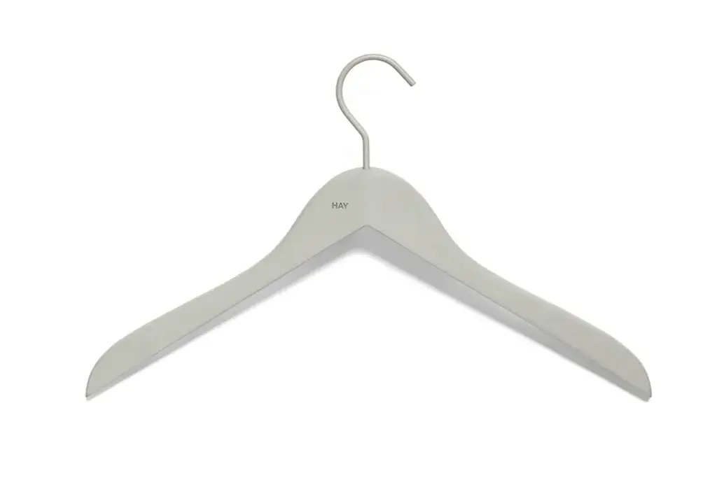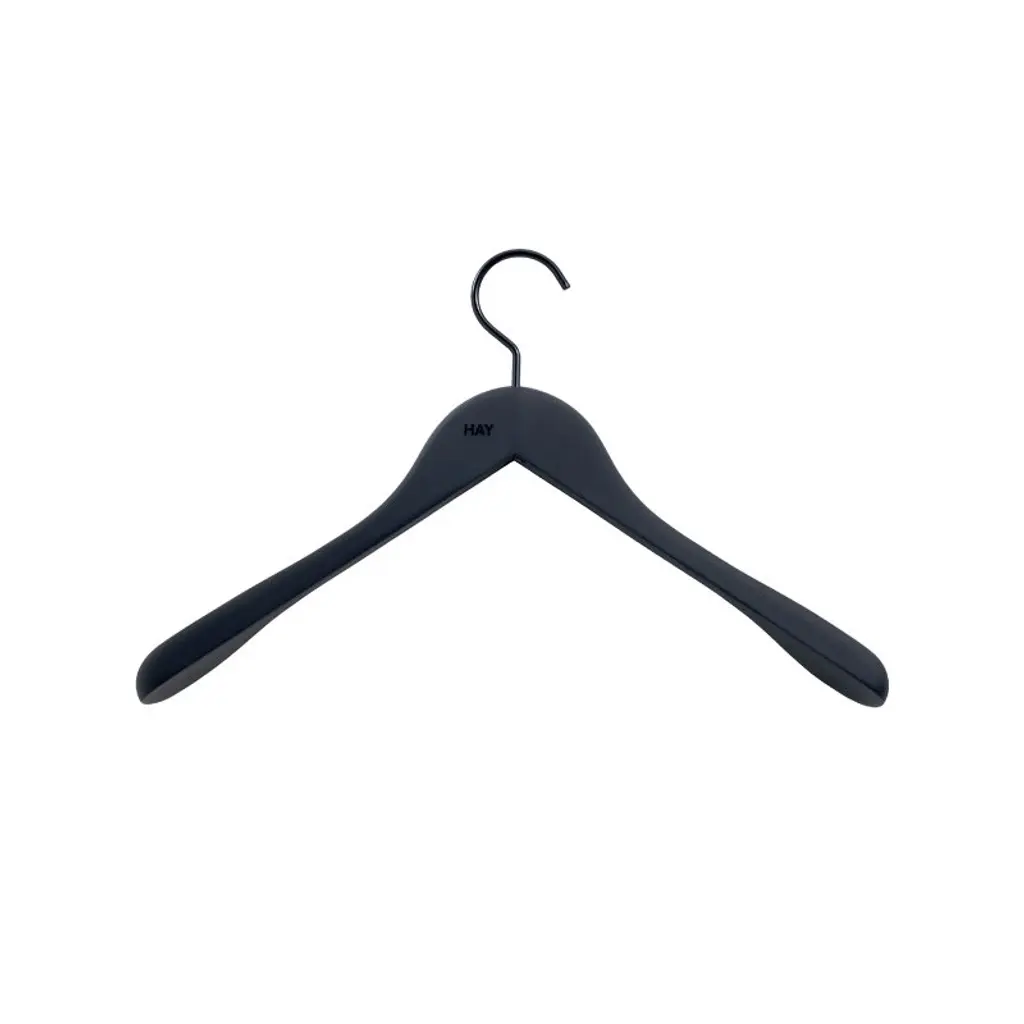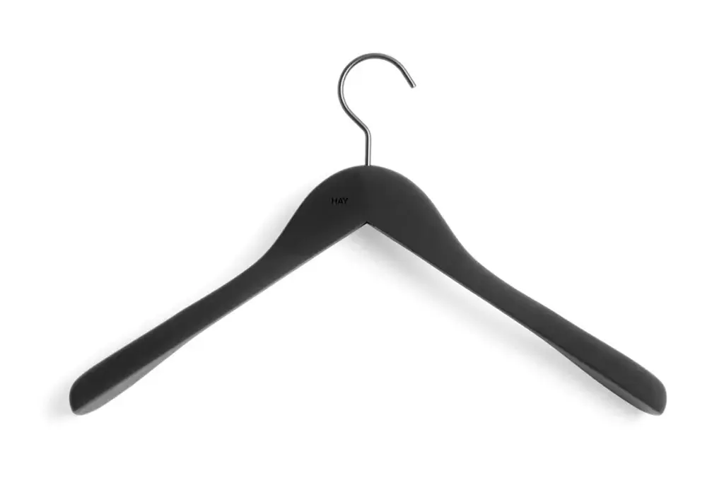 Soft Coat Hanger is a wooden hanger with broad shoulders and a matt rubber surface that provides added friction to keep coats and jackets in place.