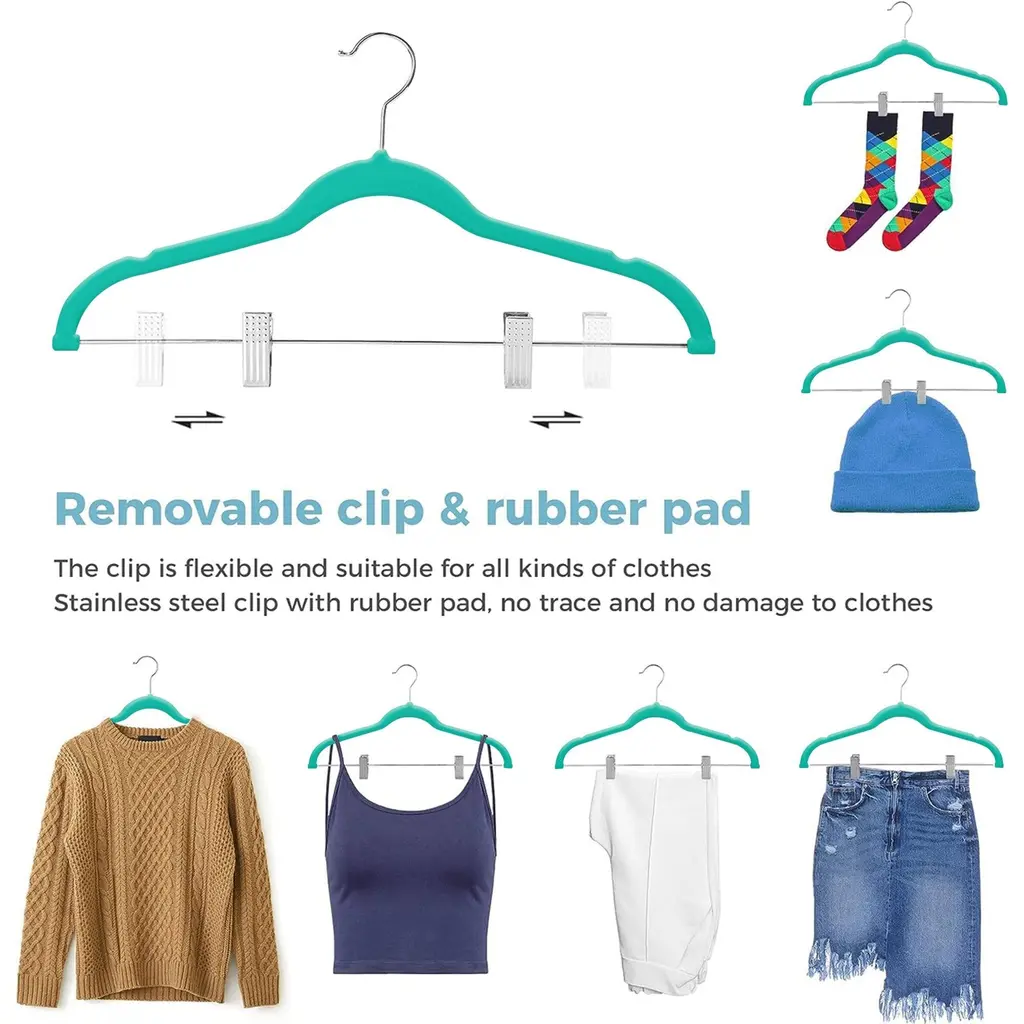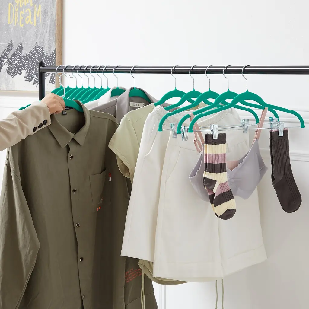 Vecelo 20-Pack Pant Hangers (Black/grey/pink/beige/green), Clothes Hangers - Green - 20 Pack