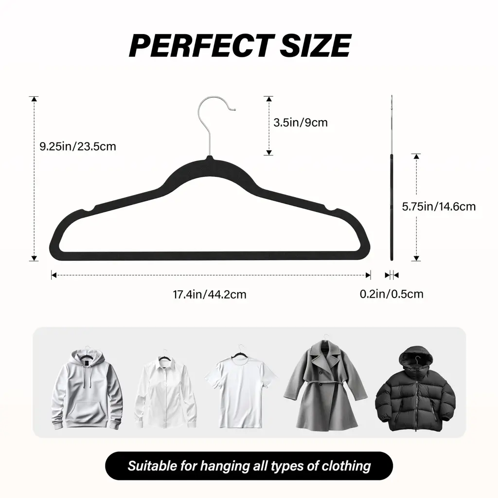 Velvet Hangers Non-Slip Clothes Hangers With Shoulder Notches - Black