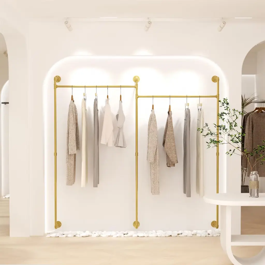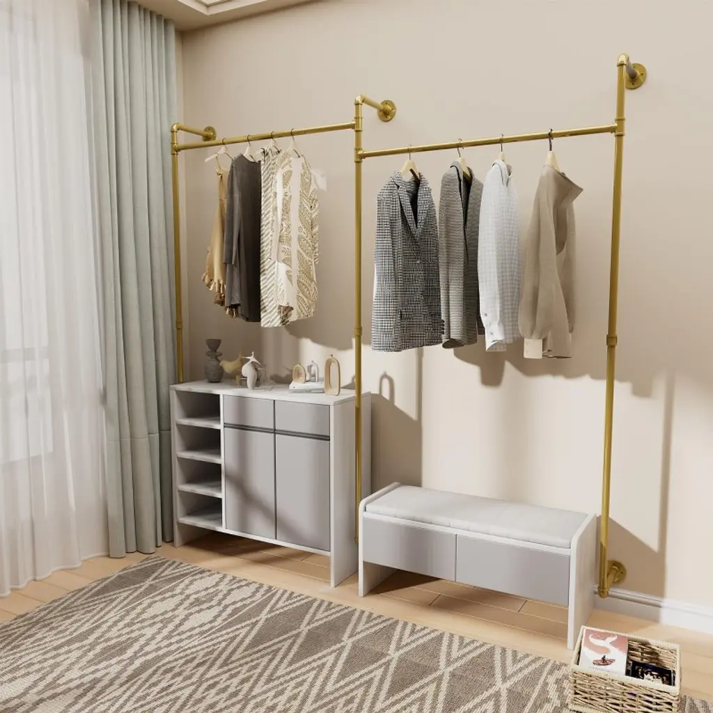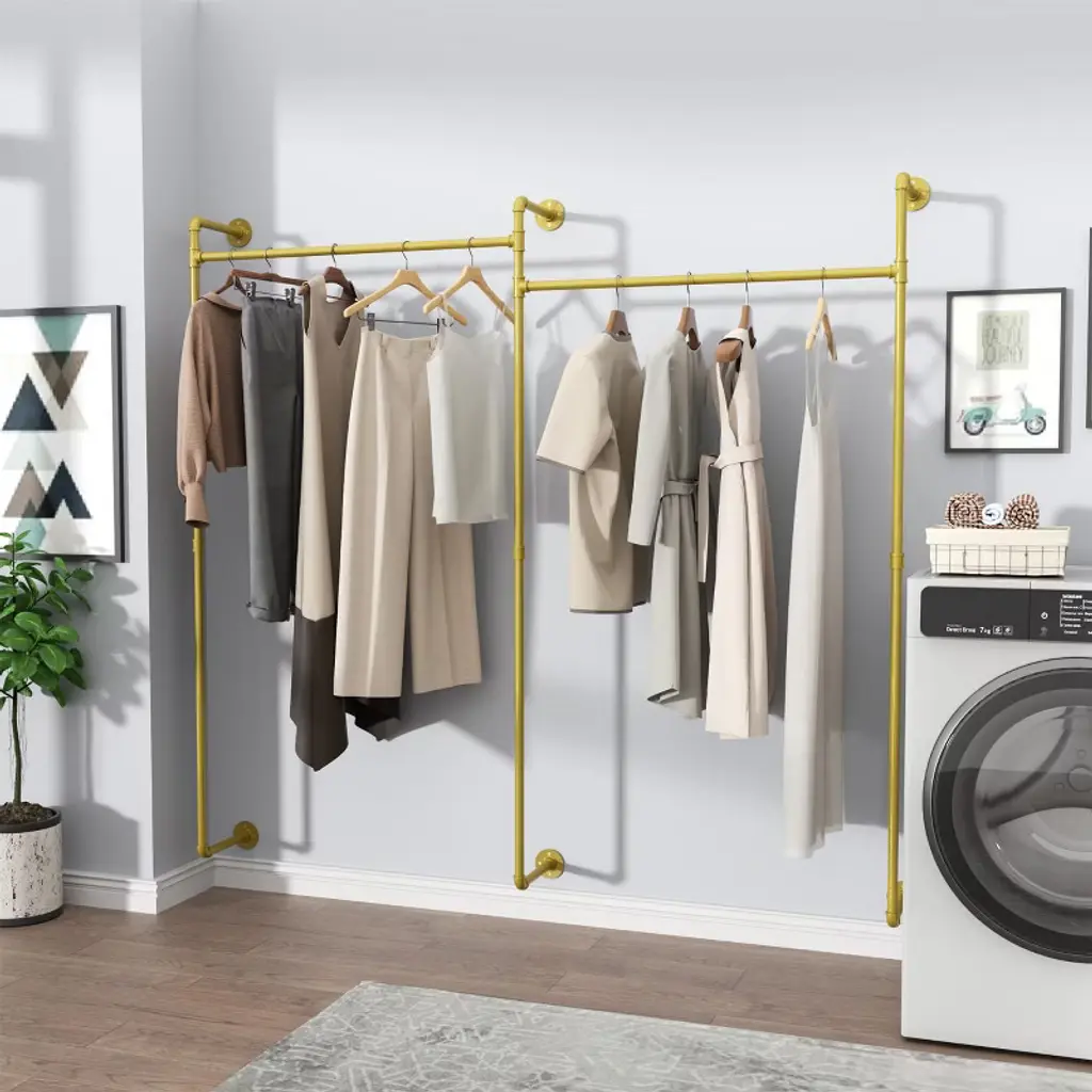 80" Long Heavy Duty Pipe Clothes Rail Walk-in Closets Wall Mounted Garment Hanging Rod Pipe Clothing Racks For Dresses Storage, Space Saving-gold