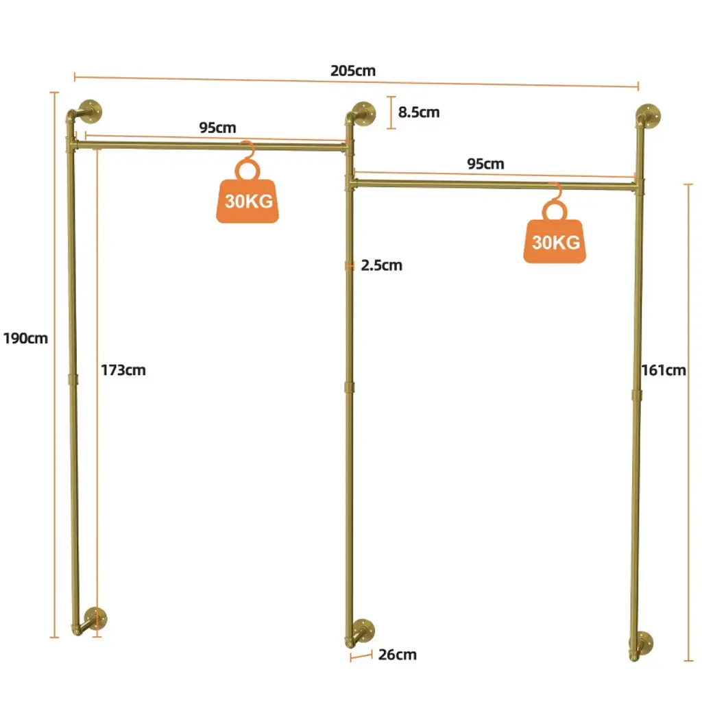 Industrial Chic Meets Functionality! Upgrade your space with our 80.7-inch Wall-Mounted Industrial Pipe Clothing Rack—perfect for fashion enthusiasts and compact living! Crafted from sturdy black-painted metal pipes, this sleek rack maximizes vertical storage while adding urban edge to bedrooms, retail shops, or condos. Hang overcoats, suits, skirts, and more with ease—its durable design holds ample garments without clutter. Wall-mounted to save floor space, it’s cost-effective and easier to assemble than traditional closets. Customize height or split into smaller racks for tiny spaces. Versatile, stylish, and built to last—redefine organization effortlessly! 🌟