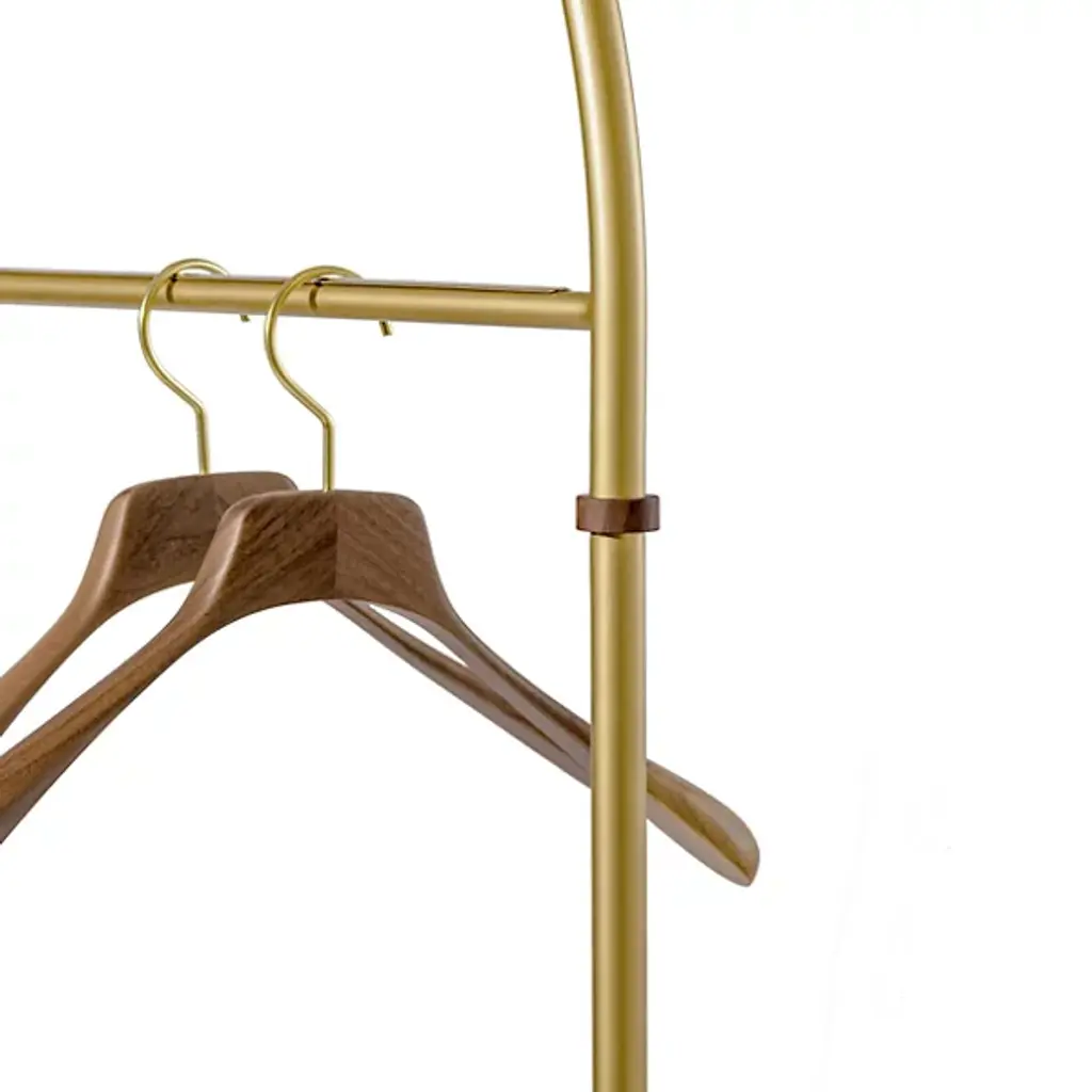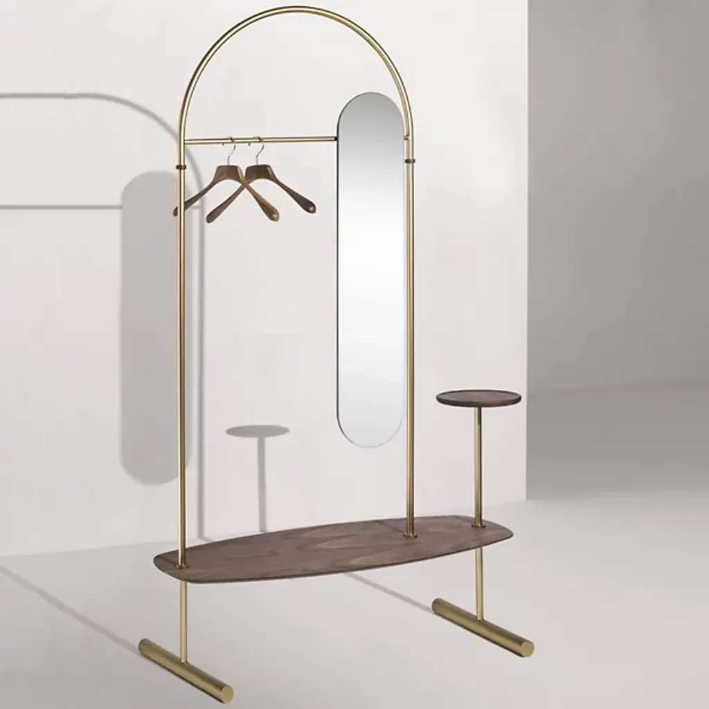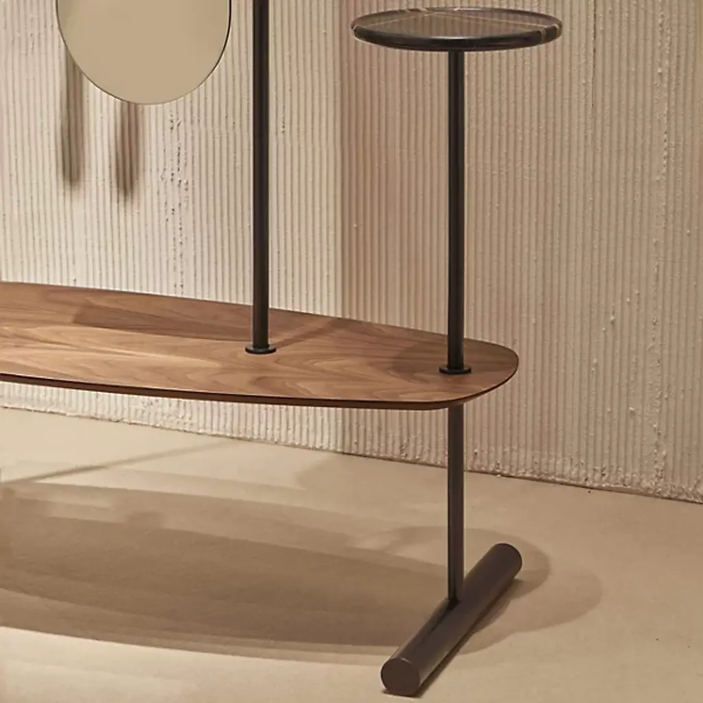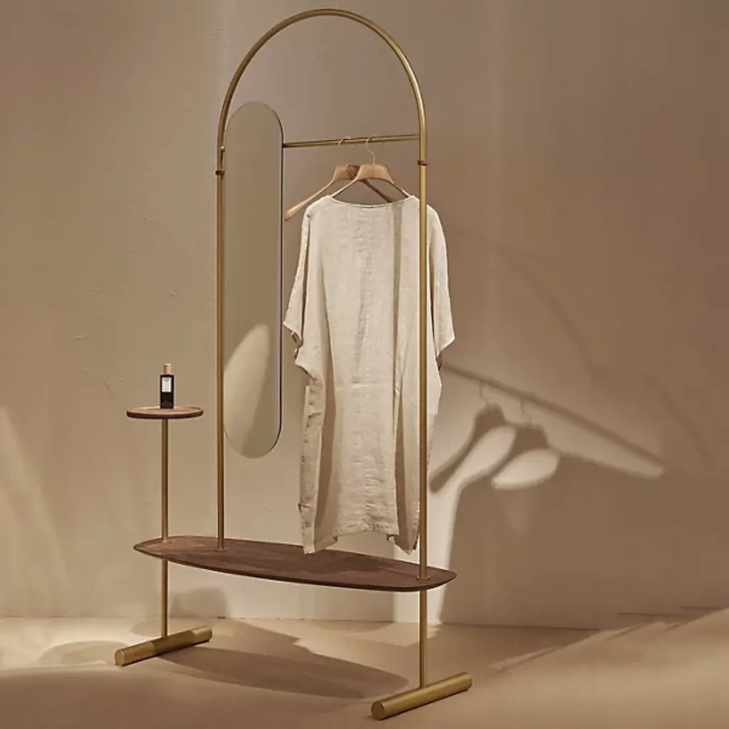 Helping get the day started with artfulness, playfulness, and efficiency. Add a surge of visual depth to a room while simplifying the morning routine with the Arco Clothing Rack and Mirror from Nomon. The sheer precision on display surely comes from designer Andres Martinez’s jewelry-making background. Martinez’s pieces seek to honor noble materials with enduring, serene designs. Martinez creates a piece that’s equally absorbing from any viewing angle. Slender metal rods shoot up from a base in asymmetric contours. One produces a circular tabletop for one’s essential items. The other rod produces an elongated mirror and a clothes-hanging valet pole. For a quick rest, a wood seat extends across the piece in rich detail.