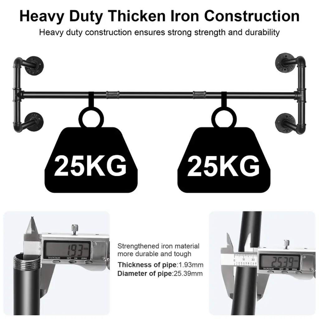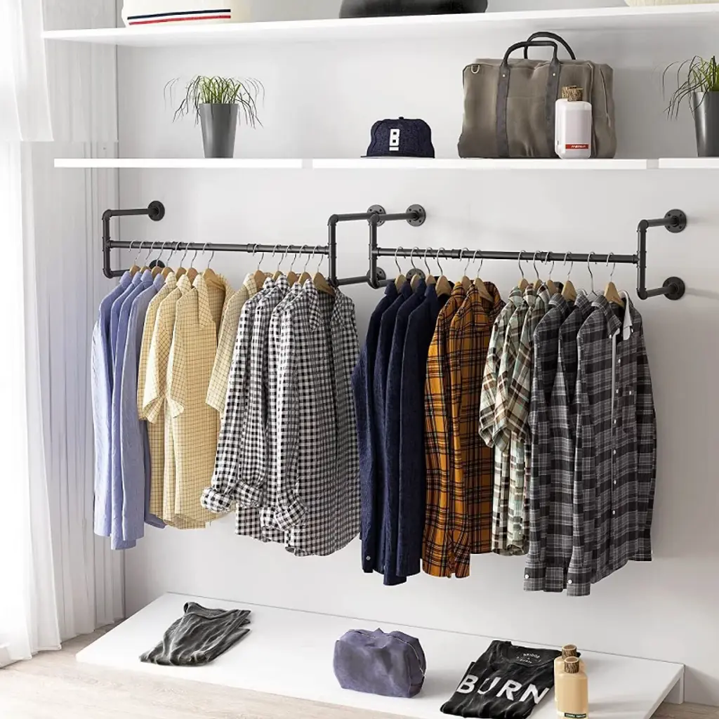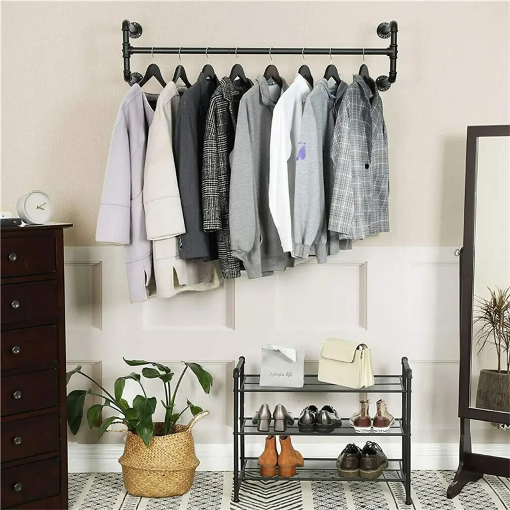 Artloge Heavy Duty Industrial Pipe Clothes Rack Wall Mount Garment Closet Storage Rack Hanging Rail Iron Pipe Organiser Hold Up 43 Hangers For Home