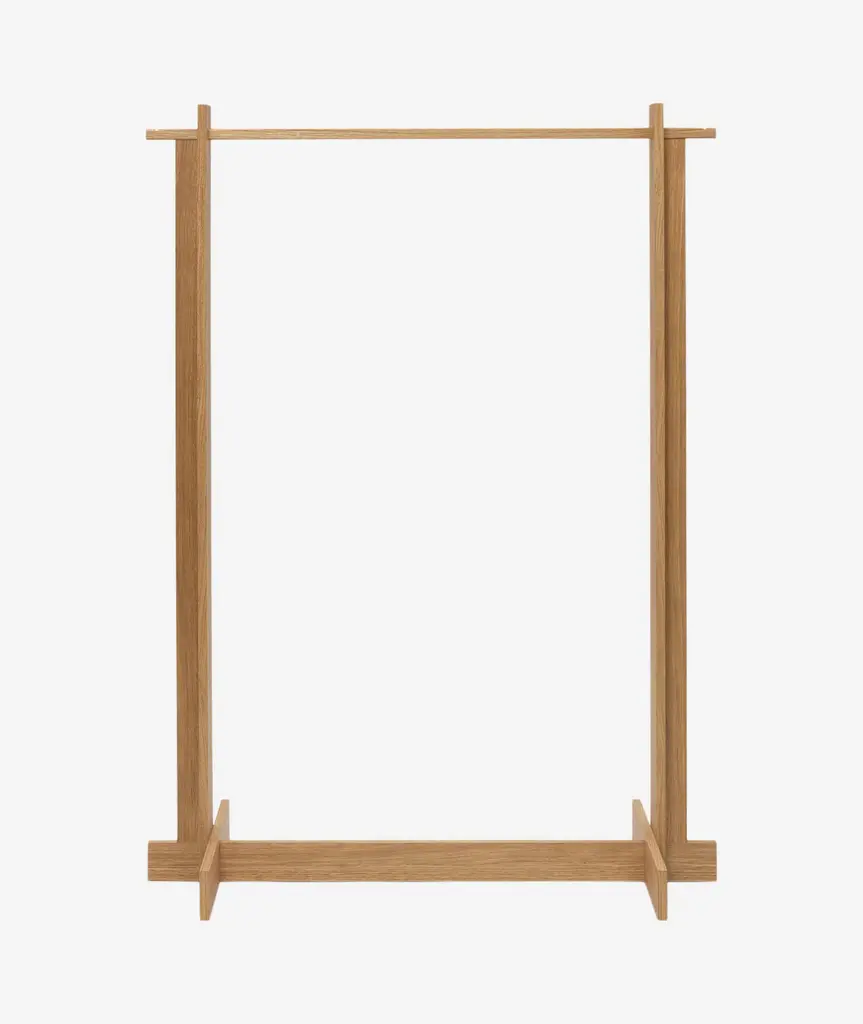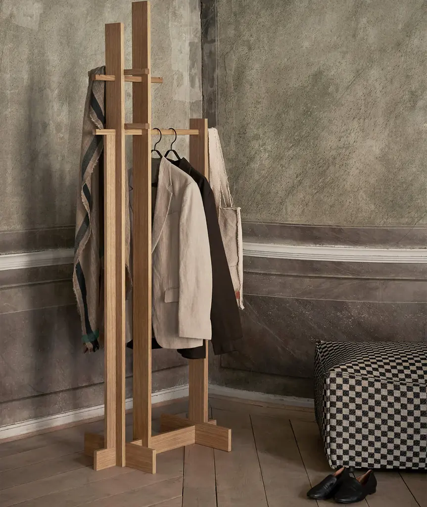 The Bridge Clothes Rack redefines clothes storage with its elevated design. Inspired by wooden architectural constructions, the clothes rack has a simple silhouette with clean lines, while intricate details and expert joinery make it a statement piece that seamlessly combines functionality and elegance.