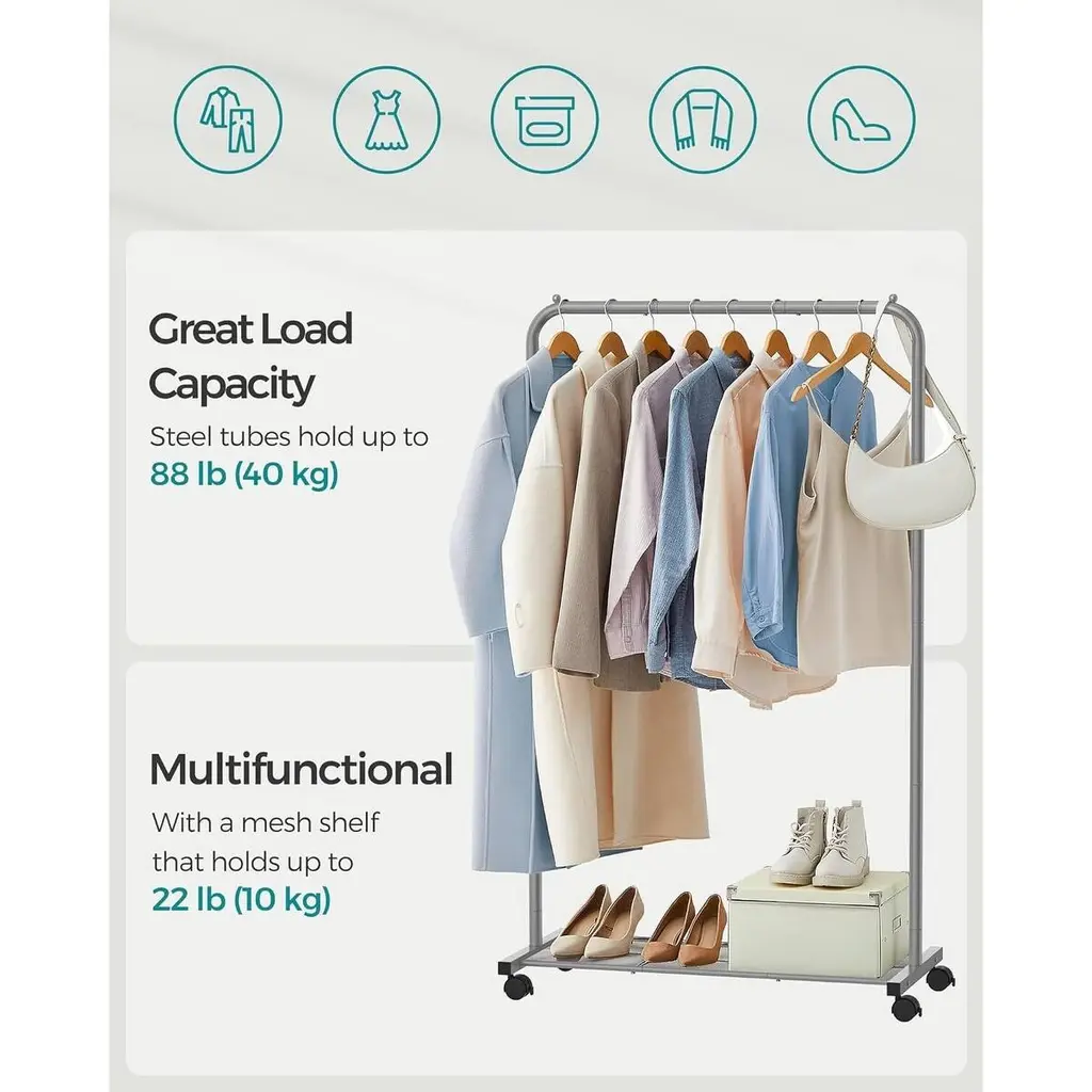 Clothes Rack With Wheels - Grey - 159*35.8*62.2inch