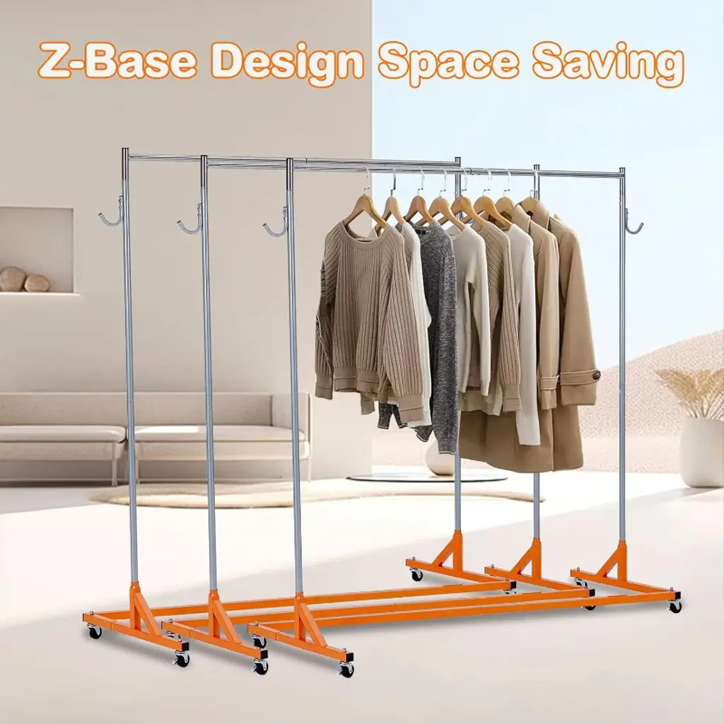 Clothes Rack With Z Base, Heavy Duty Garment Rack, Rolling Industrial Z Rack For Home Store Laundry, Sturdy Metal Hanging Rack For Clothes Display