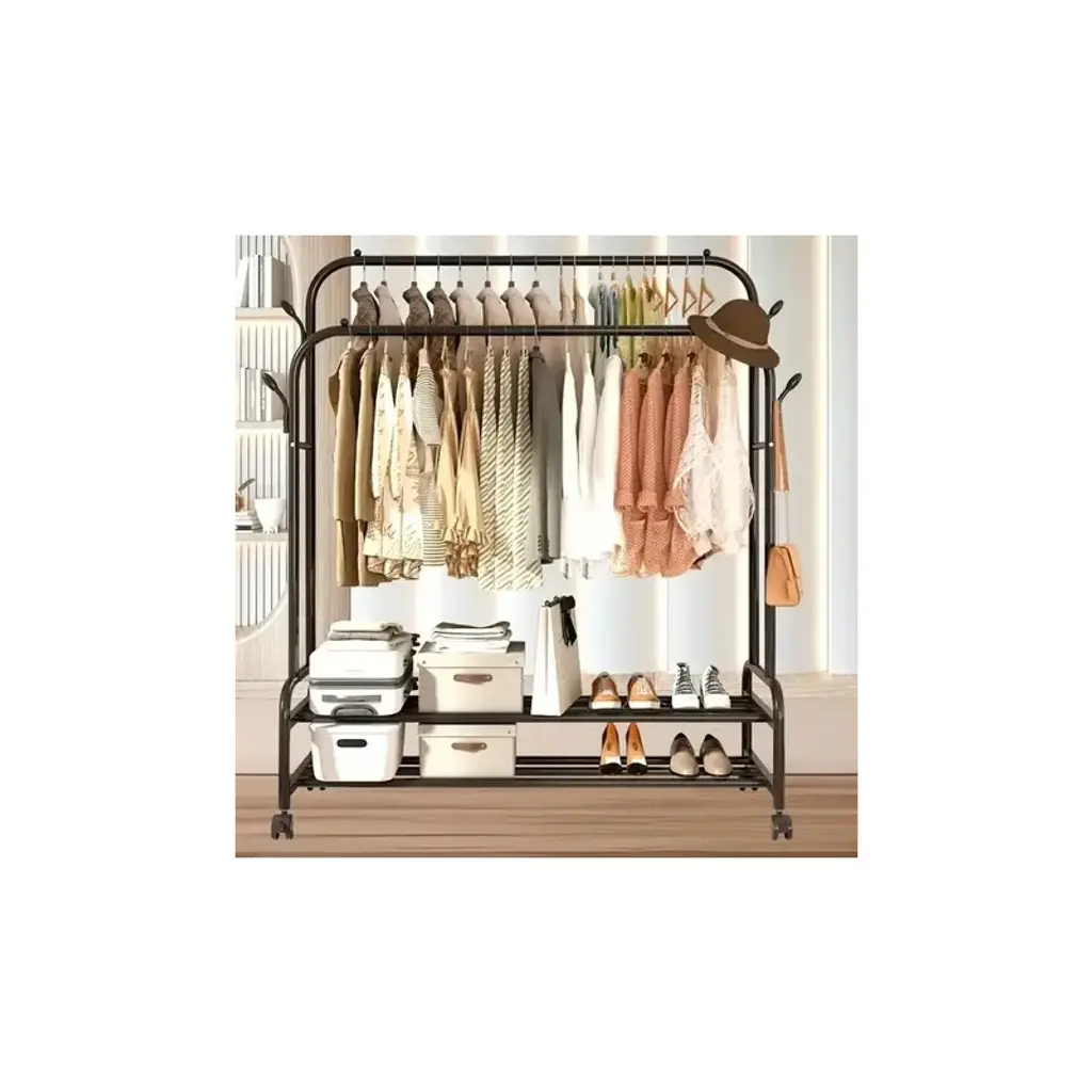 Double Clothing Garment Rack With Shelves Capacity 800lbs Clothing Racks On Wheels Rolling Clothes Rack For Hanging Clothes Heavy Duty Portable Rack