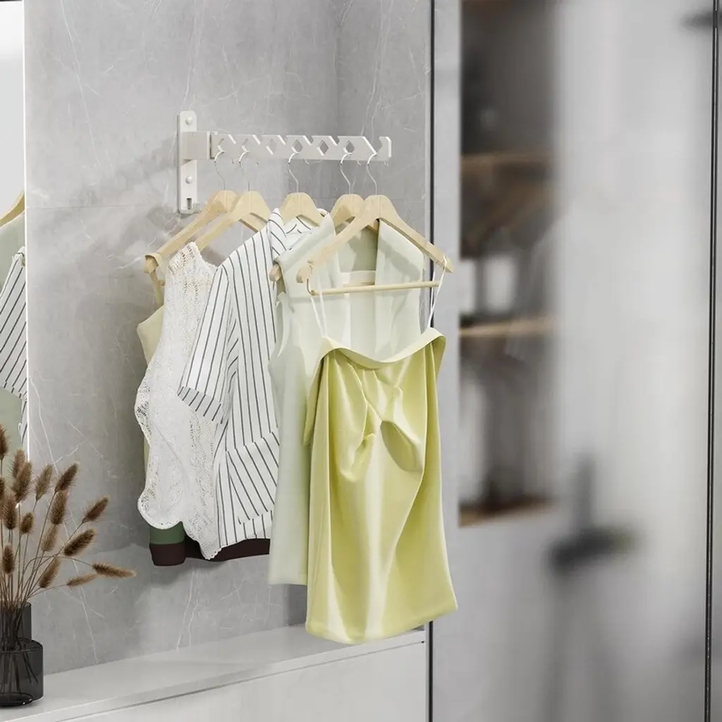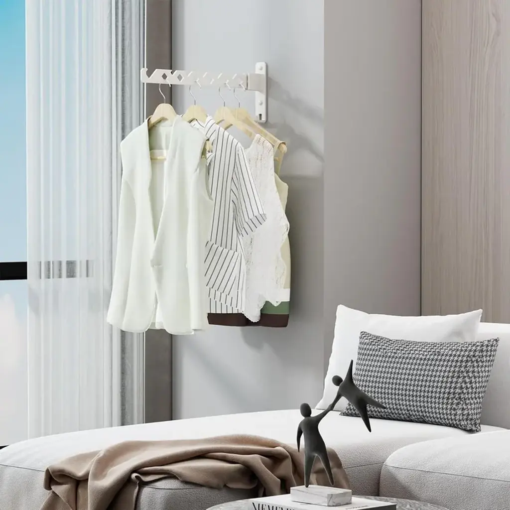 Foldable Wall Mounted Drying Rack, Laundry Hooks For Bathroom, Indoor Wall Mounted Clothes Racks - White 2 Pack