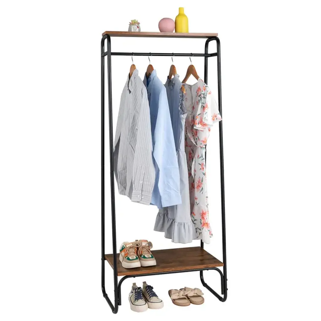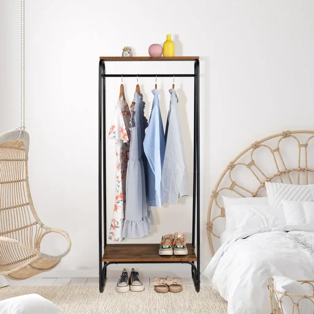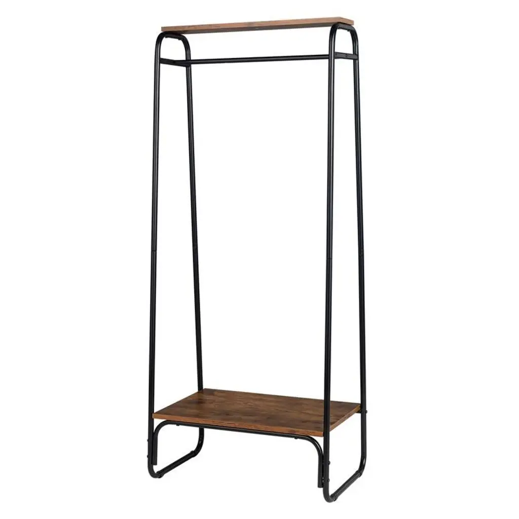 Freestanding Clothing Rack With 2 Wood Shelves - N/a - Oak & White