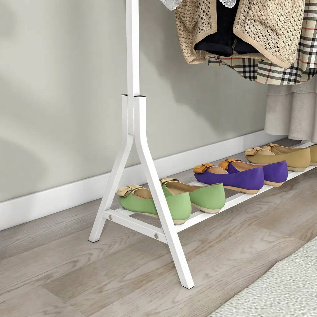 Garment Rack Freestanding Hanger Multi-Functional Single Pole Clothing Rack - White