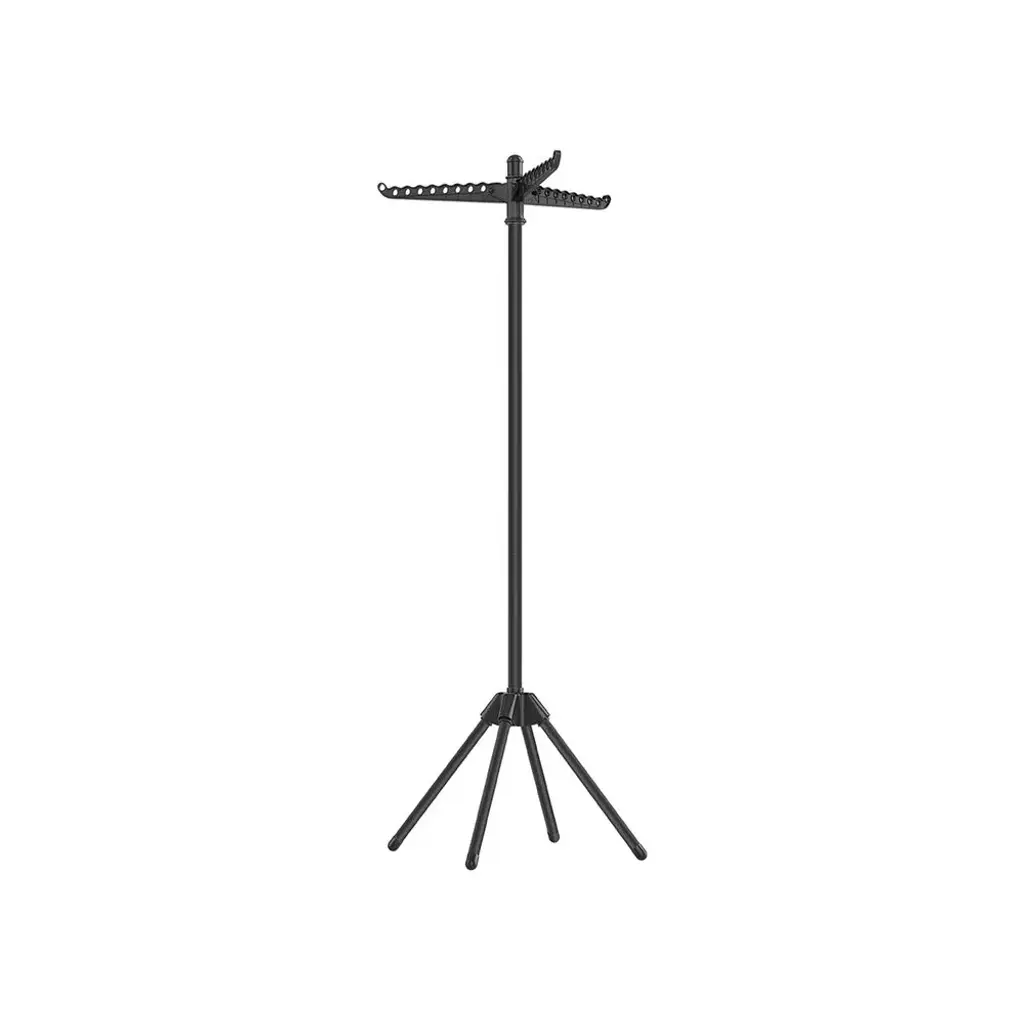 With a simple but effective design, this folding clothes rack will be a great addition to your dressing room, bed room or guest room. Its black finish and 2 hanging bars show off your favorite articles of clothing in a posh style while also making them more accessible. This folding clothes rack is constructed into an X-frame design made of sturdy metal. The crossbars on each side ensure that the rack stays open when needed and folds flat for storage. The lightweight frame makes it super easy to move the rack from one side of the home to the other. Rubber feet also keep the rack secure as you load and unload various articles of clothing. The unique style of this rack will give your bedroom, guest room or dressing room a fancy, hotel-like feel. It can easily be folded and tucked away into a storage closet or behind a door when not needed. Not only is it easy to use, but it is also easy to assemble, with no tools required. This rack is perfect for hanging wet laundry to dry or storing seasonal or frequently-used clothing. The height is favorable for longer articles such as coats, suit pieces, dresses and pants. Set this rack up in your guest room, dressing room, entryway or bedroom for easy-to-access clothing. This is a great storage option for bedrooms without closets and smaller living spaces.