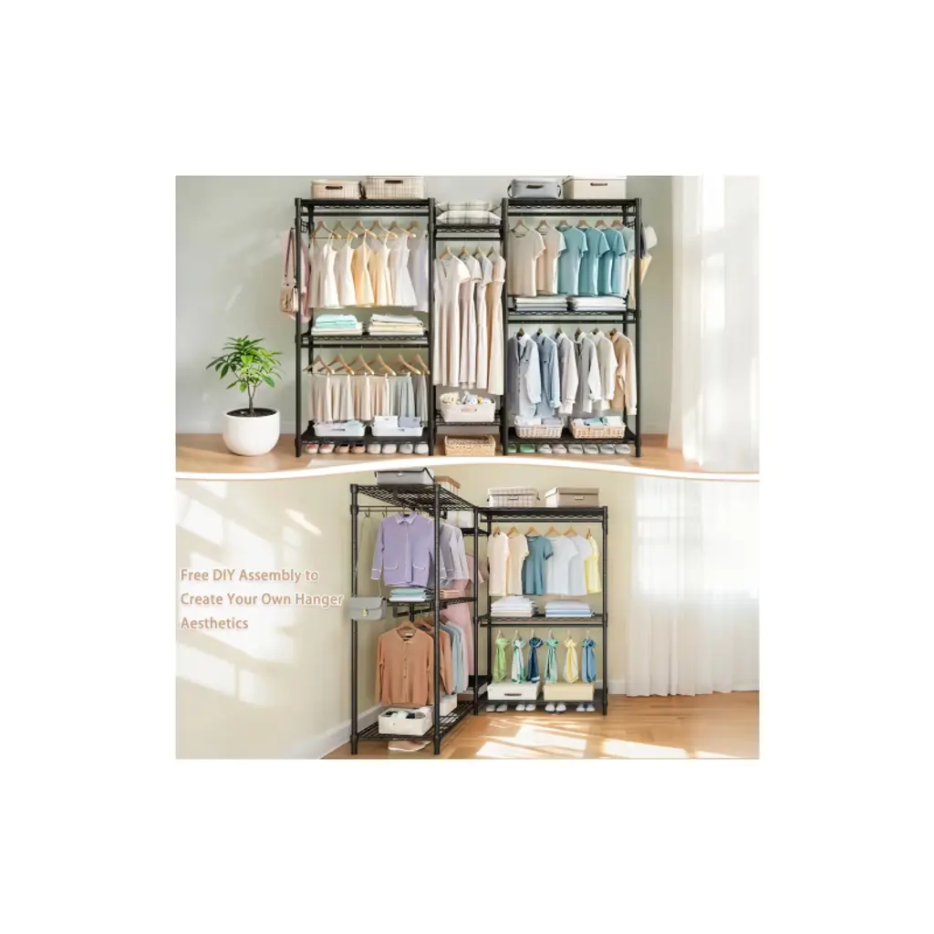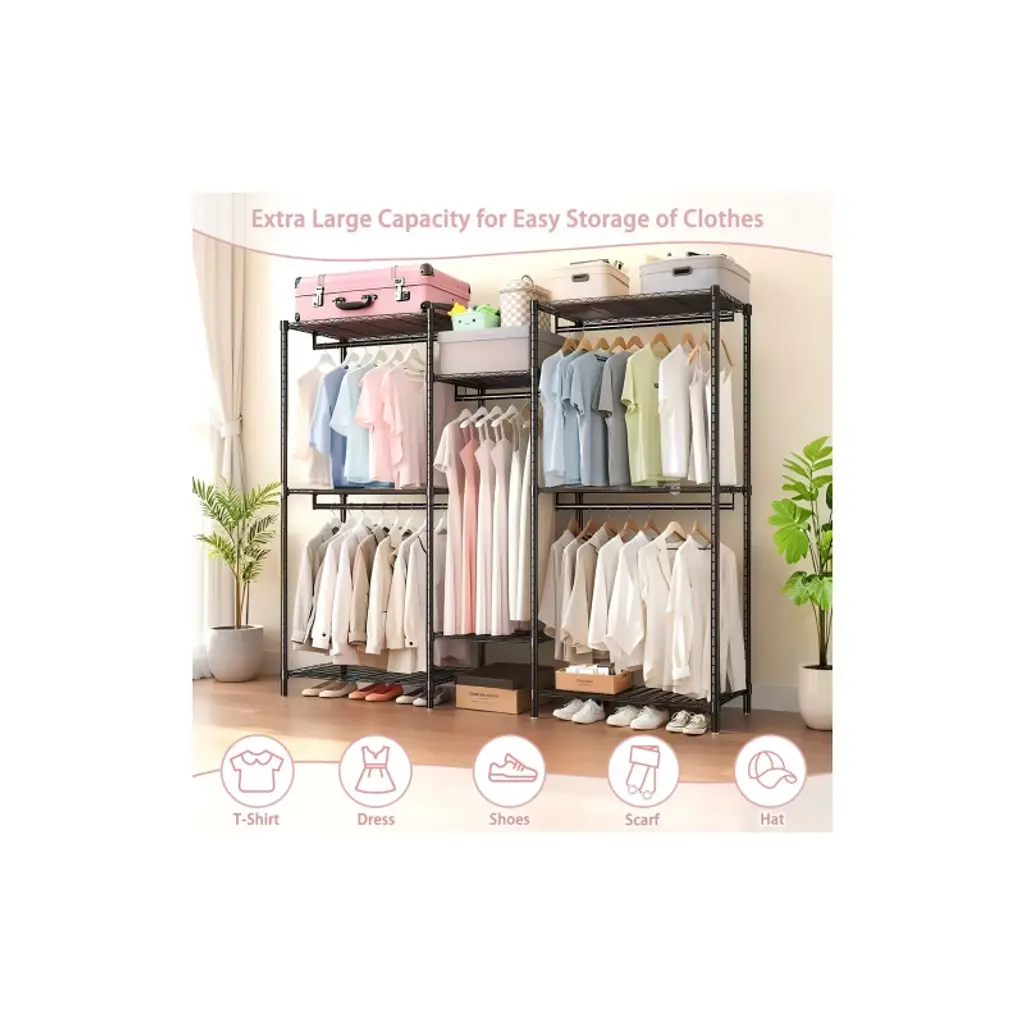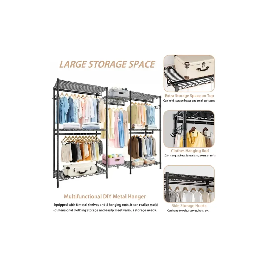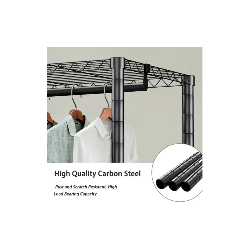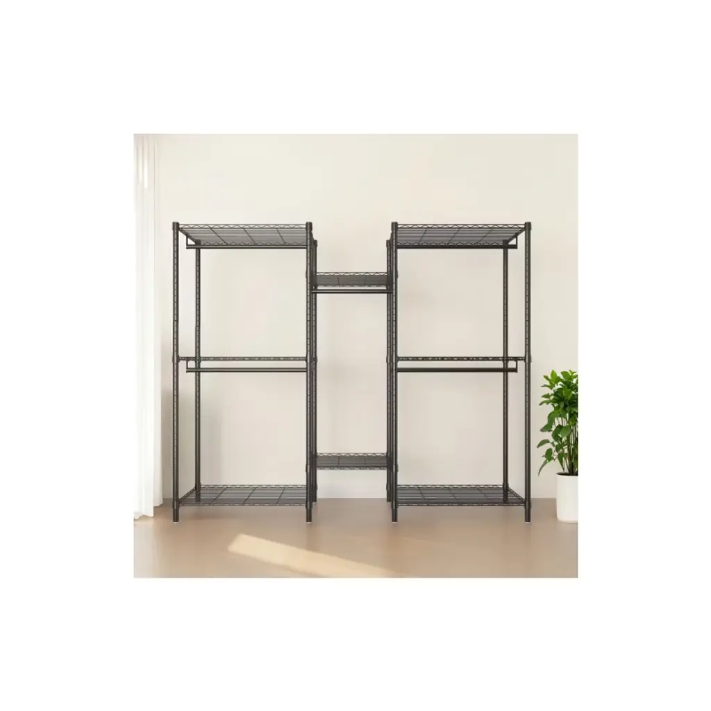 Livareemlen Heavy Duty Garment Rack,adjustable Wire Shelving Clothes Rack With 8 Adjustable Wire Shelves And 5 Clothes Rails,black