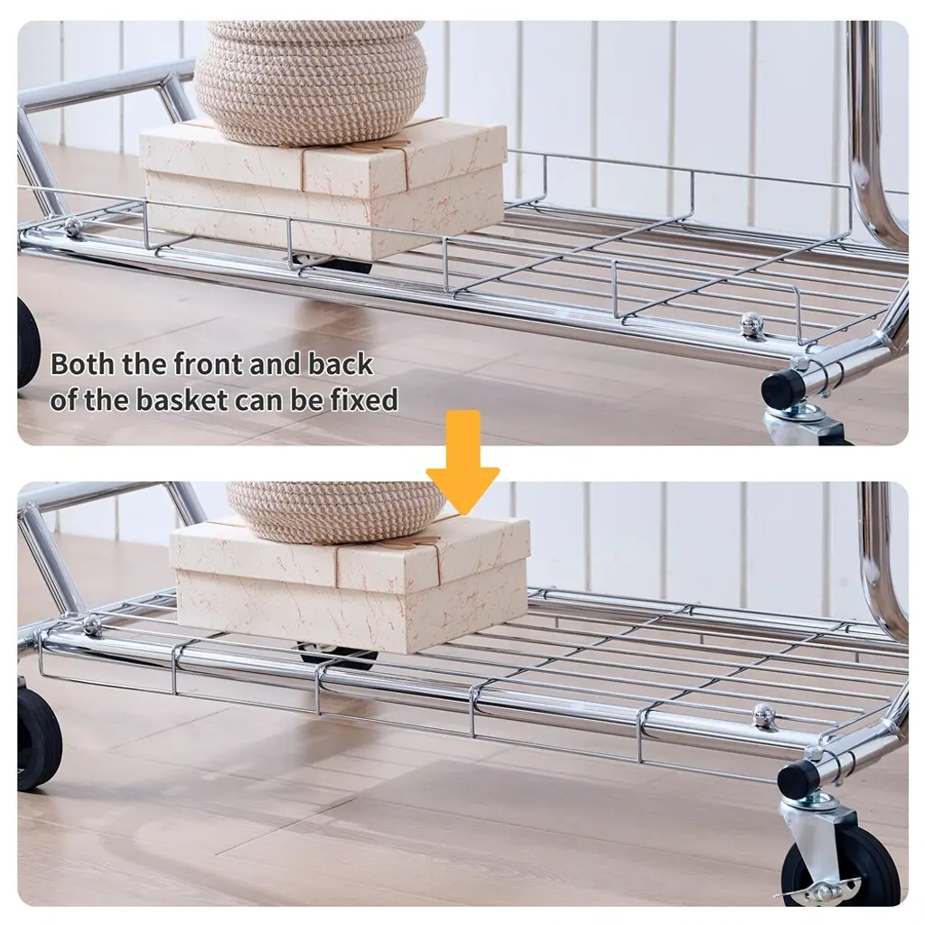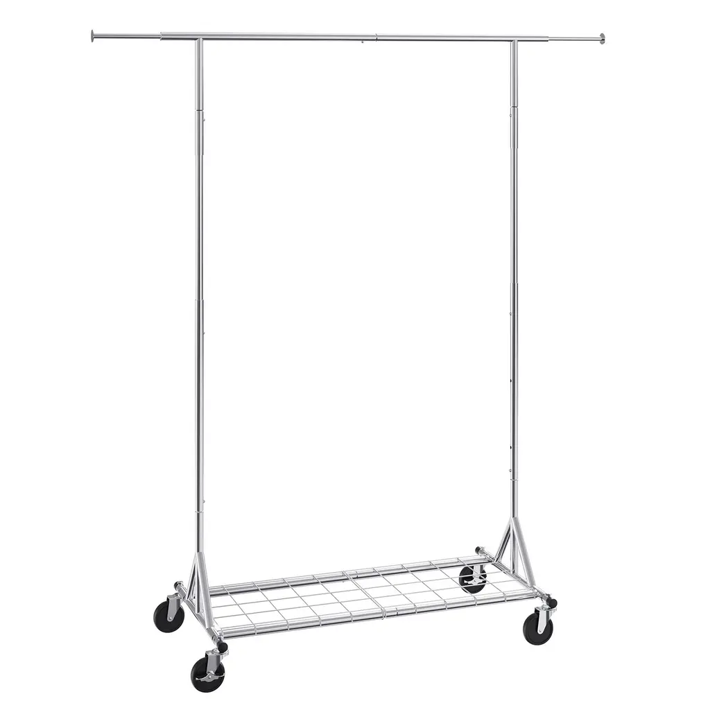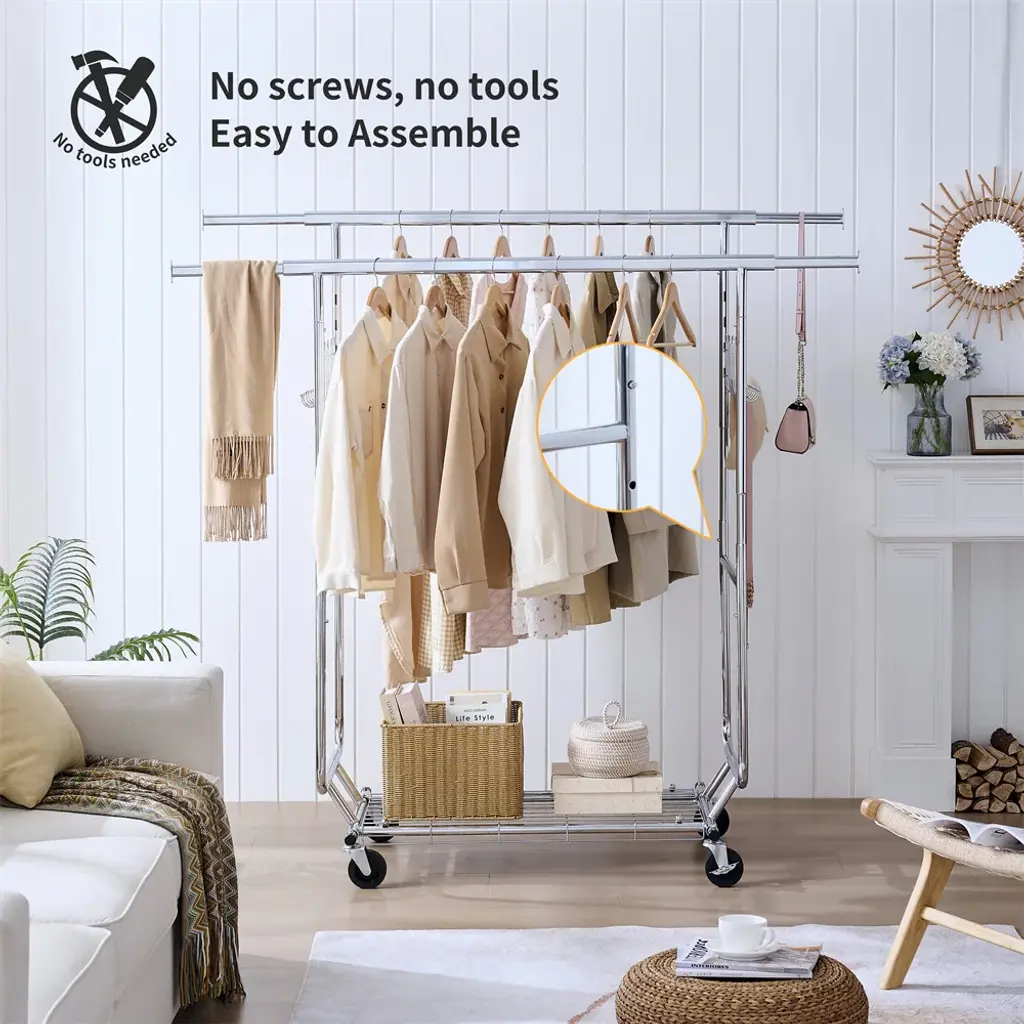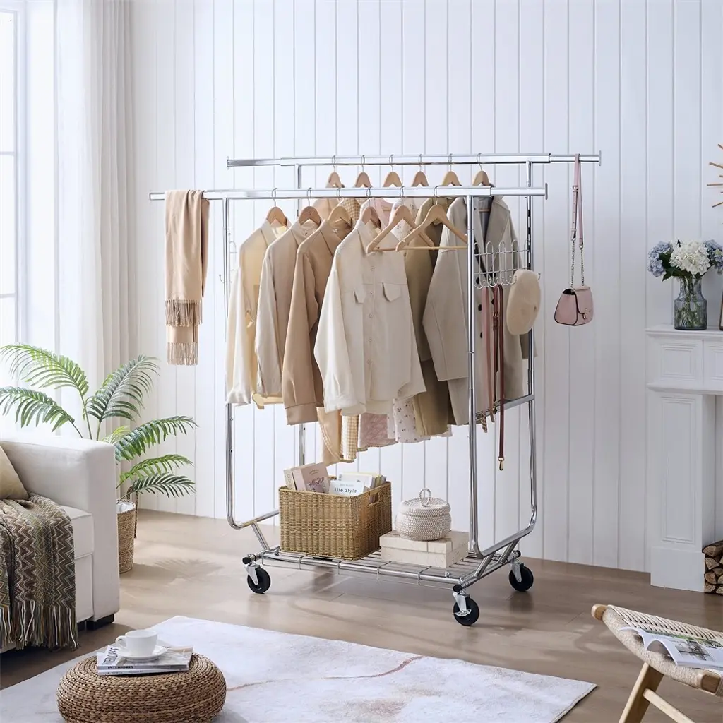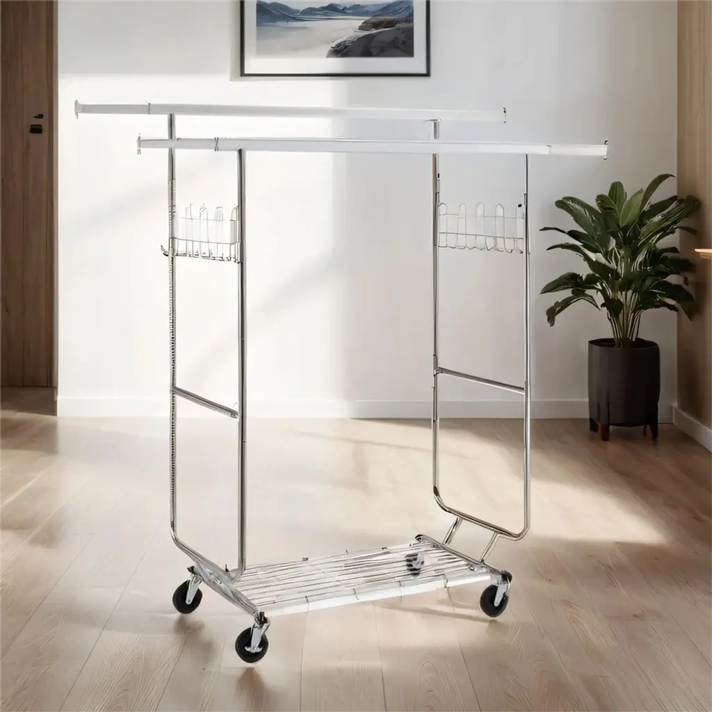 Portable Capacity 800lbs Rolling Double Clothing Racks With Shelves - Silver