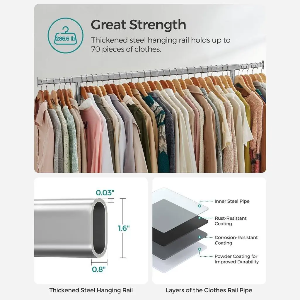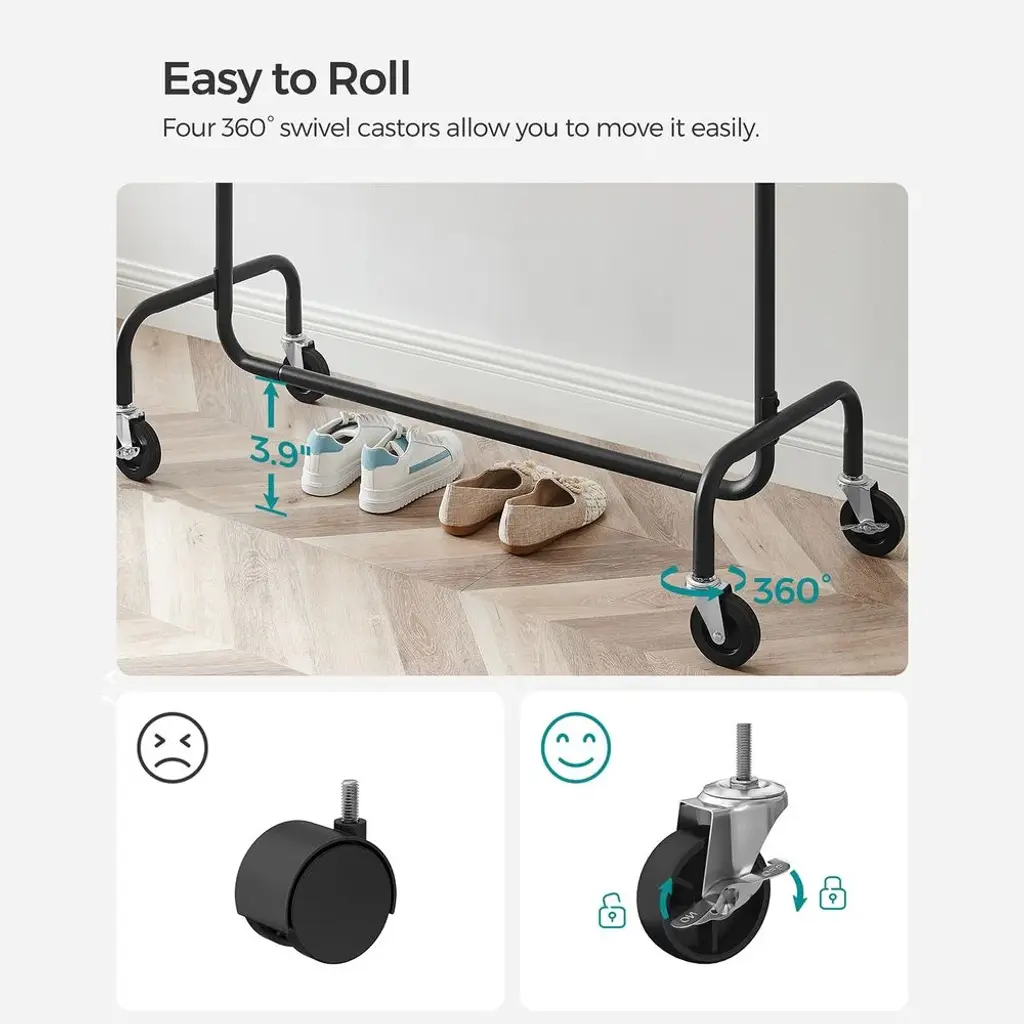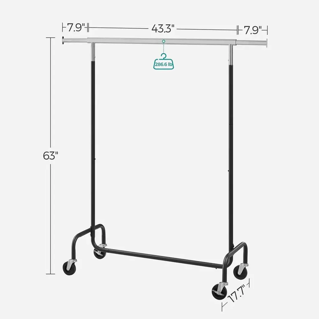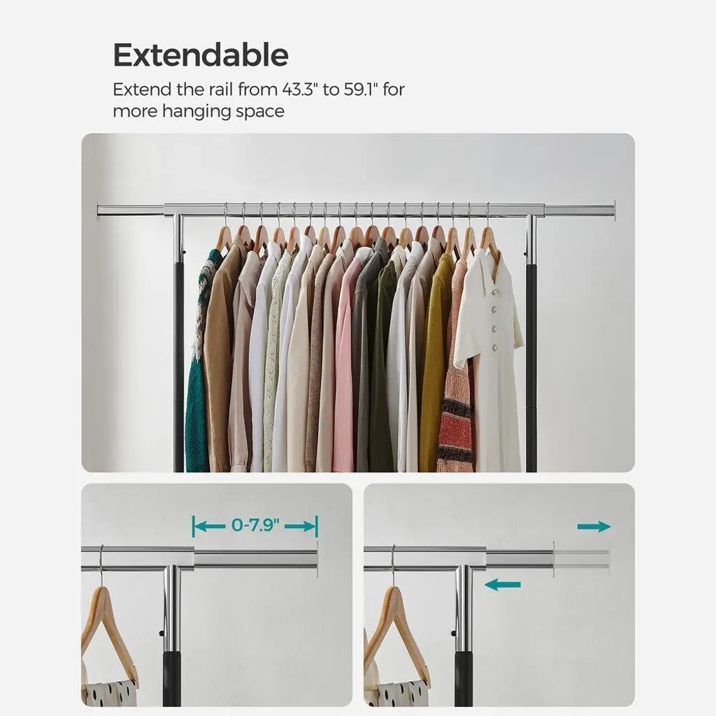 Steel Clothes Rack With Extendable Rods Heavy-Duty Casters And 286 Lb Capacity - 43.3" X 17.7" X 63" - Black-Silver