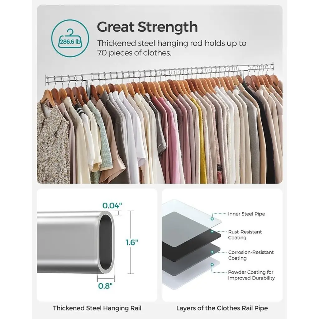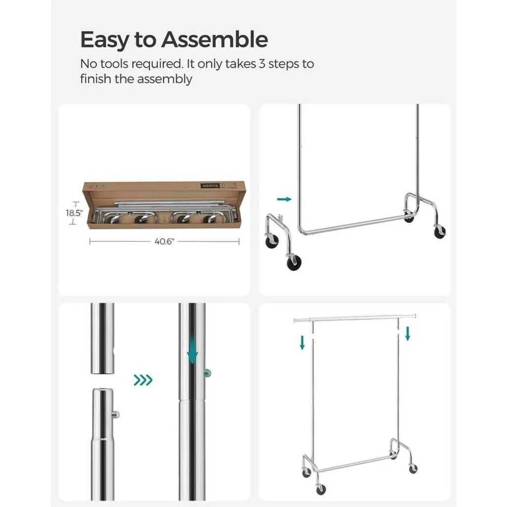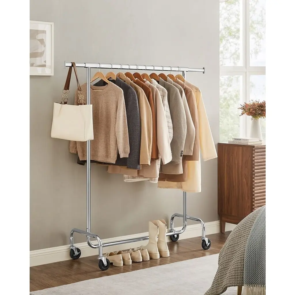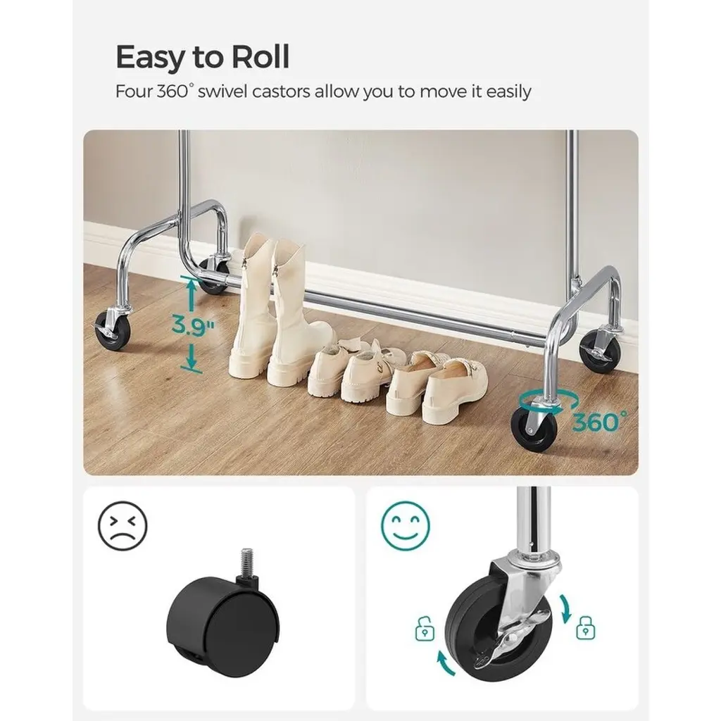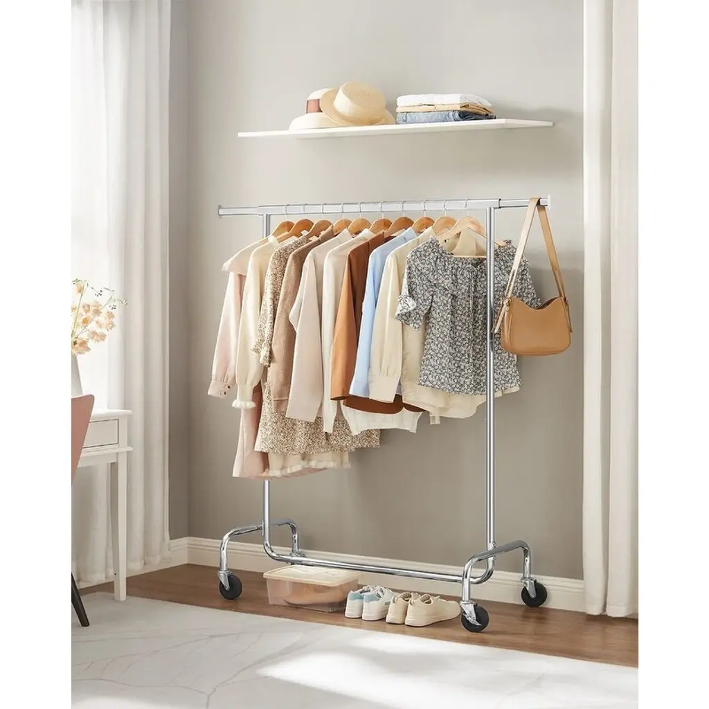 Steel Clothes Rack With Extendable Rods Heavy-Duty Casters And 286 Lb Capacity - 43.3" X 17.7" X 63" - Silver