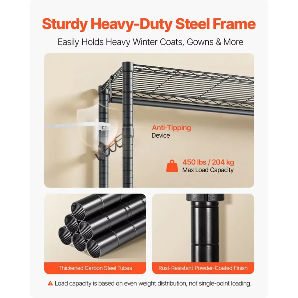 Vevor Rolling Clothes Rack, Heavy Duty Clothing Garment Rack, 3 Adjustable Tiers Clothing Racks With Carbon Steel, 450 Lbs Load Capacity ,Black
