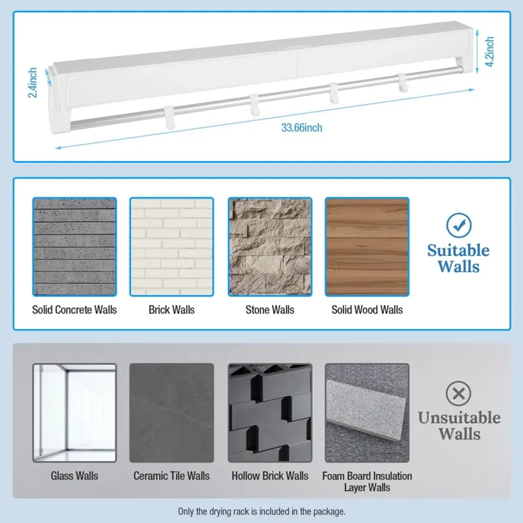 Yiyibyus Collapsible Wall Mounted Hanger 7 Drying Rods Clothes Rack
