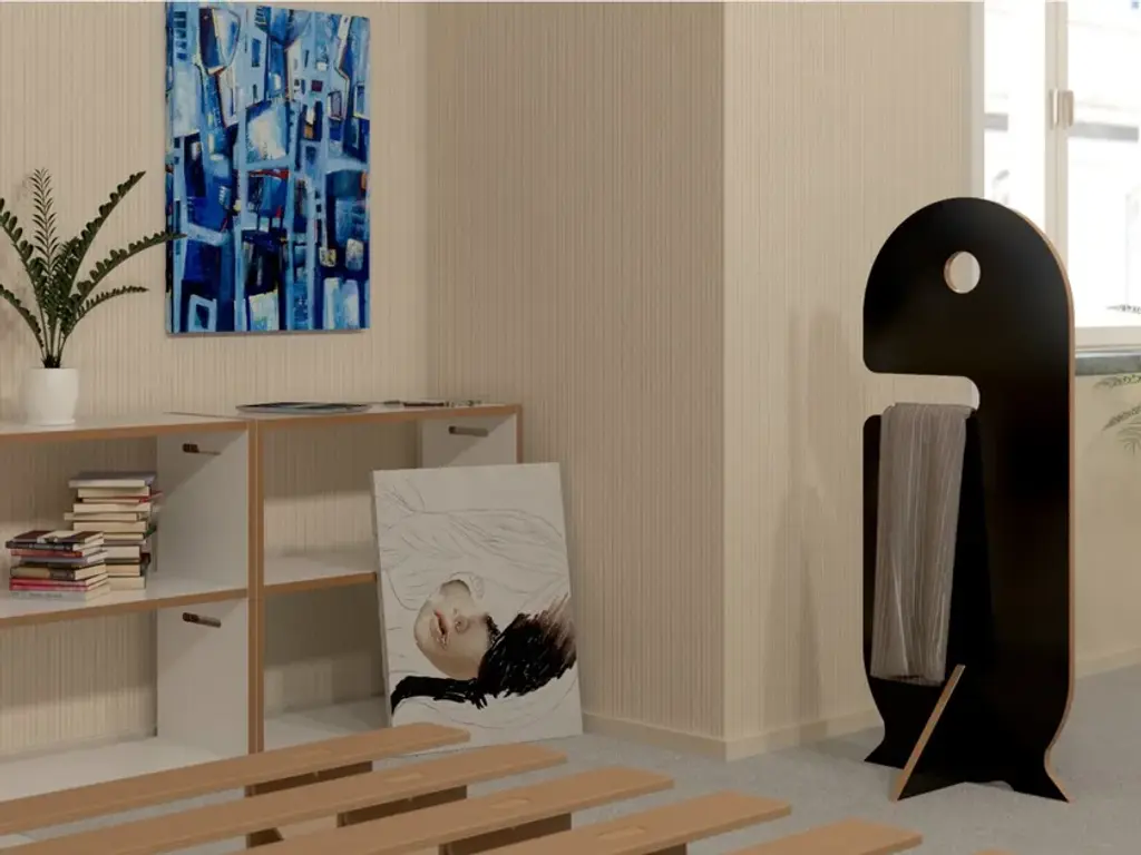 Tojo-dienerleA fresh and stylish dress servant which is only sticked (2 parts),very easy to handle and flexible. You can put blazers, jackets, blouses, shirts, trousers, ties over, on and in the dienerle.Especially for private households, hotels, restaurants, shops and companies, public houses like universities, schools, kindergardens, museums, etc. dienerle is an all-purpose dress servant, likeable,uncomplicated and washable!Material:MDF coated, whiteMDF coated, anthraciteMDF coated, green