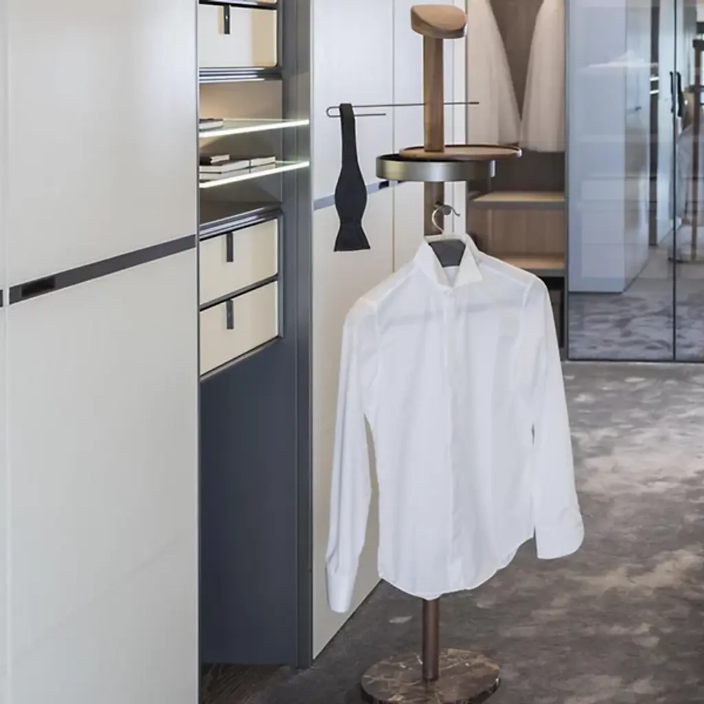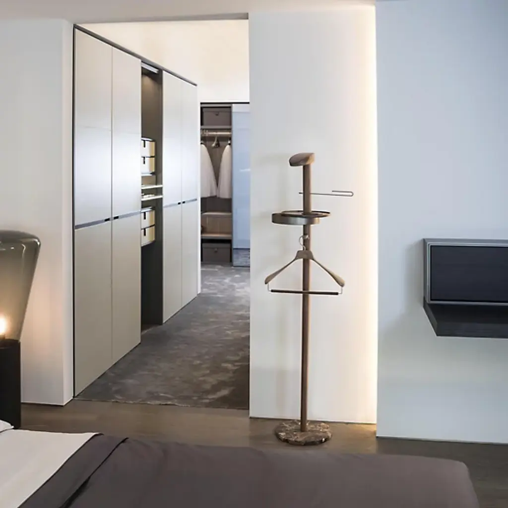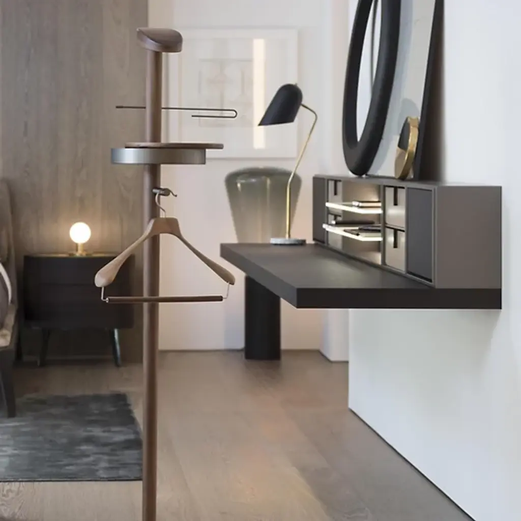 A sophisticated men’s accessory. Nomon’s Men’s Galan Valet Stand offers an elegant way to hang up jackets and accessories. Place in a bedroom for a functional and stylish enhancement. Features a round marble base attached by a long stem with added storage. Made from solid wood materials in a few sleek finishes.