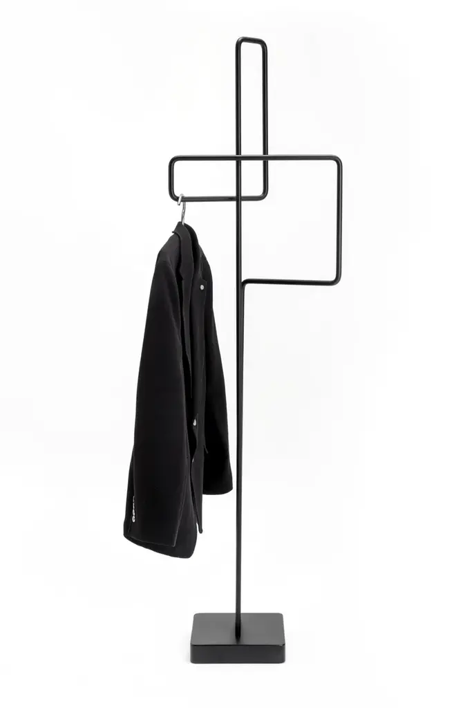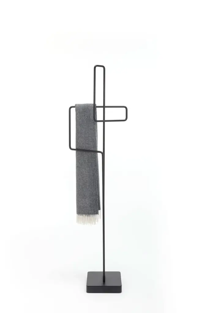 The elegant steel valet stand pays homage to the line drawings by Pablo Picasso, which he made on paper without lifting his pen off the page. The result is sleek and arrestingly good design in black, umbra grey or Marrone metallic.Without frills, it performs its duties as a dresser, wardrobe, towel or bag assistant. When not in use, it looks almost like a dancer – and can also be one half of a beautiful duet. It stands on a solid pedestal and, thanks to felt gliders, can easily be moved from one living area to another.
