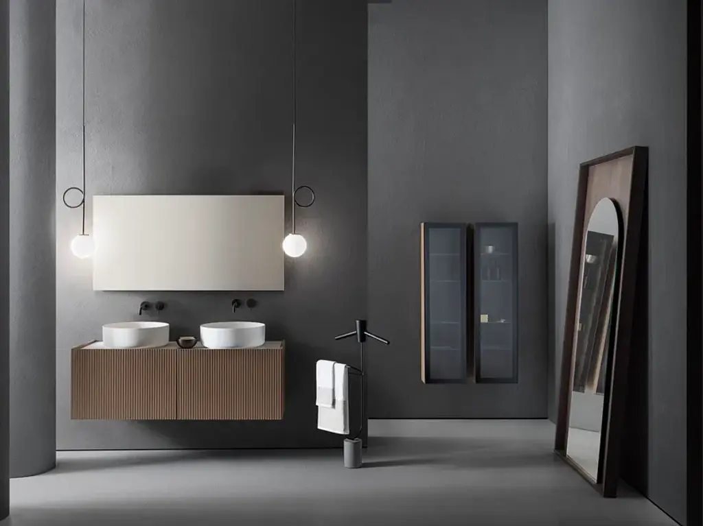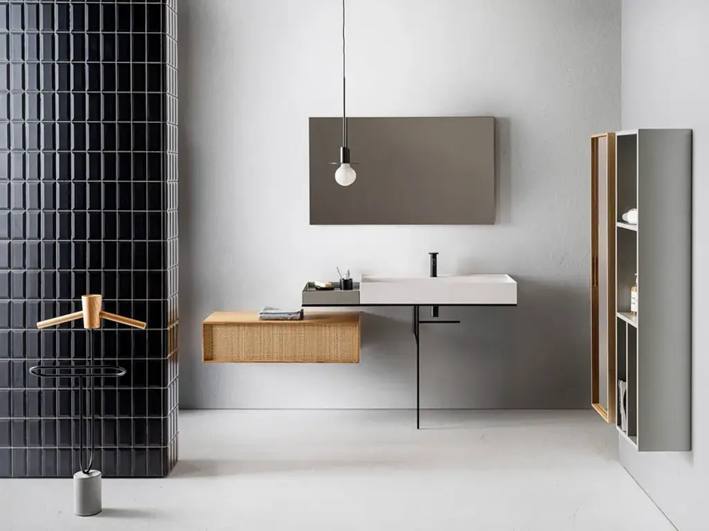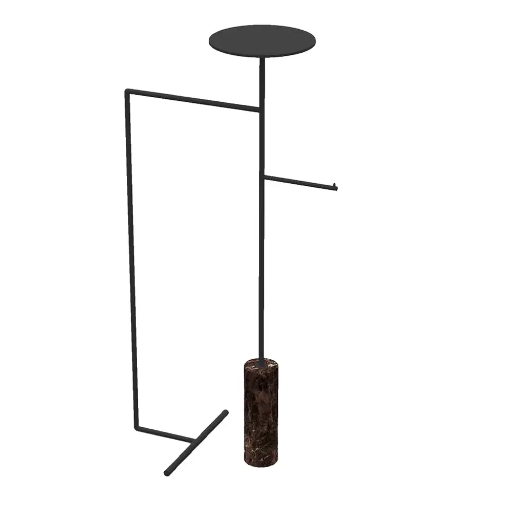 SERVETTO APPENDIABITI is a valet stand made with matte black finish, cylindrical concrete base and matte black metal frame.Useful functional and with a touch of irony, episode Two completes and enriches the collection of coat rack/towel rack complements and accessories. Objects with a strong aesthetic character that freely complement bathroom furniture.Fully customizable: both the stem and the additional element can be painted in the preferred RAL color.Also available with matte black metal components and additional elements in the requested RAL color.