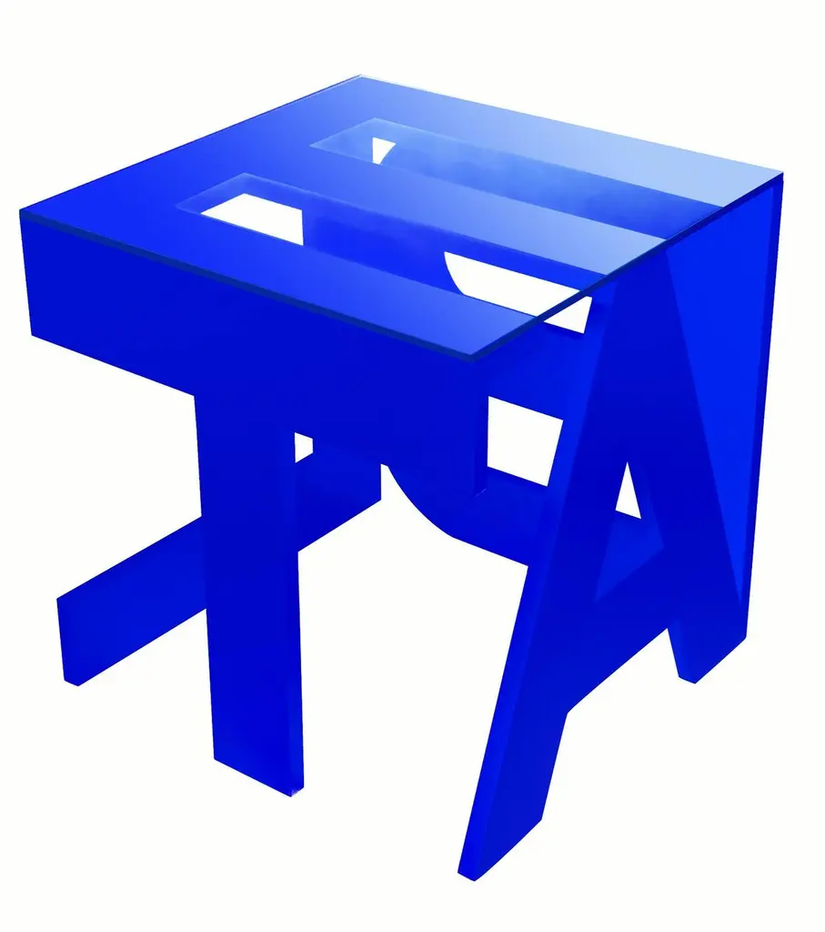 Table Table by Roberta RampazzoCurrent ProductionDimensions: W 50 x D 50 x H 52 cmMaterials: MDF 20mm, Glass.With the letters of the word "table", the designer created a funny table with an unique design which brings innovation and modernity to the space. This means that the user can play with the table. Made with certified MDF. Final painting is with lacquer in different collors making it possible to decorate in accordance with personal styles.With more than 20 years on the market, Roberta has her own line of furniture as well as for high end stores such as Firma Casa, Mosarte, Objekto (France), Vermeil and others.Her work has been published in the most important design magazines and websites in more than 30 countries like England, The United States, France, Germany, Italy, Denmark and Japan. Also being recognised in important design awards including A Design Award and German Design Award Nominee. Her pieces are currently being sold in high end shops in Brazil, France, England, Australia, Spain and others countries. Currently living in London the designer is continuing her creative work with new products and companies.