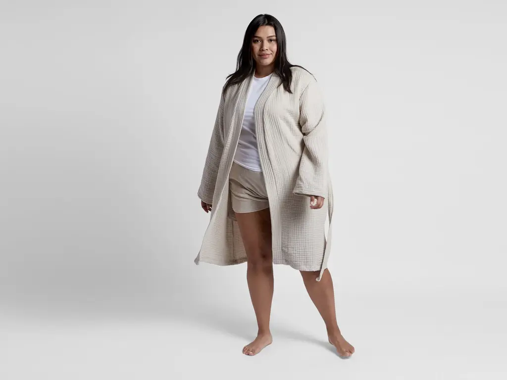 Lounge like you mean it. Soft, light and luxurious, this super comfy robe features fluffy 4-ply gauze, a snug waist tie and two hidden side pockets. Made from premium 100% long-staple cotton and designed to have a relaxed, comfortablefit.