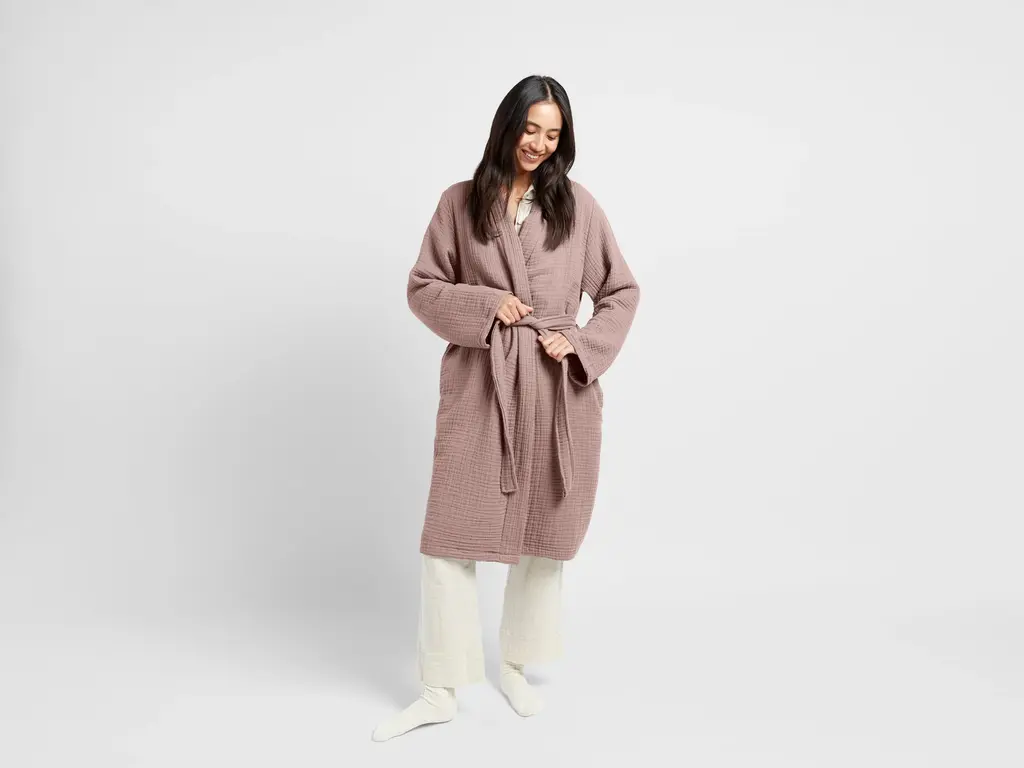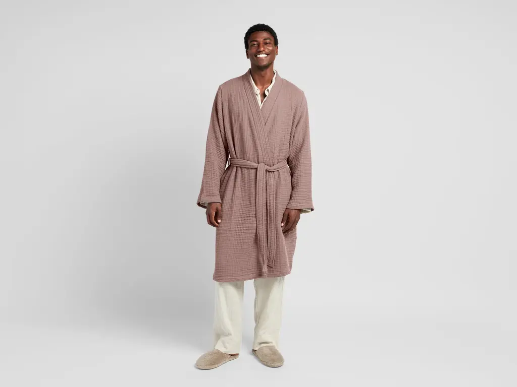 Lounge like you mean it. Soft, light and luxurious, this super comfy robe features fluffy 4-ply gauze, a snug waist tie and two hidden side pockets. Made from premium 100% long-staple cotton and designed to have a relaxed, comfortablefit.