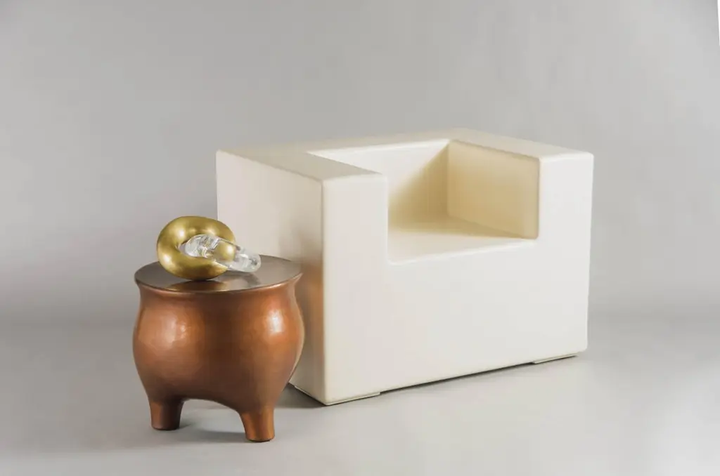 Arm rest chairCream LacquerMetal baseContemporary Hand madeLacquer is a technique that dates back to the Shang dynasty, circa 1600-1100 B.C. These pieces are made with at least 60 coats of organic lacquer. Each layer of lacquer is applied with a curing period of 24 hours in between so that it can dry. Each piece is individually crafted and is unique. Natural inclusions may show on the lacquer.