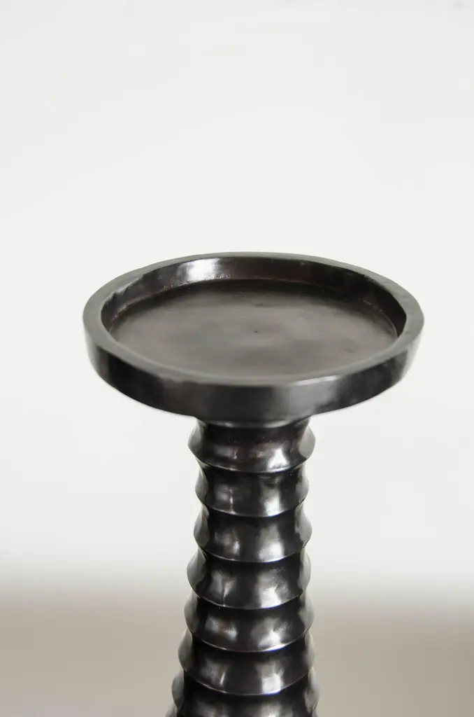 Contemporary Hand Repoussé Tang Candlestand In Black Copper By Robert Kuo
