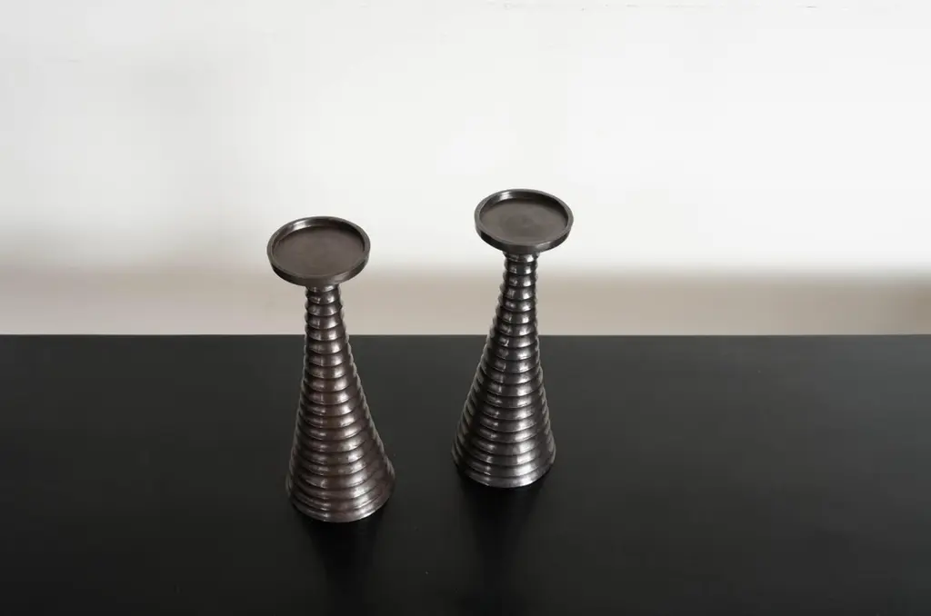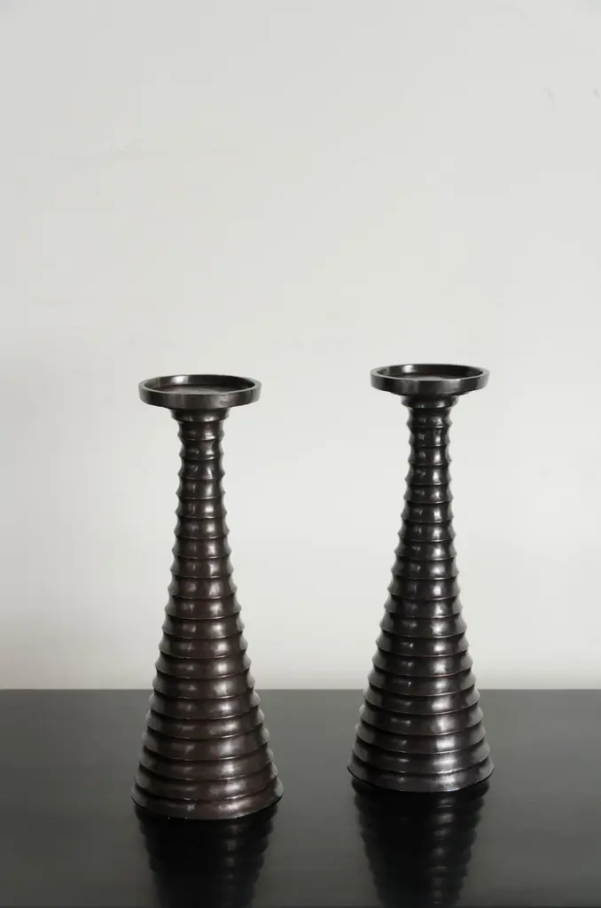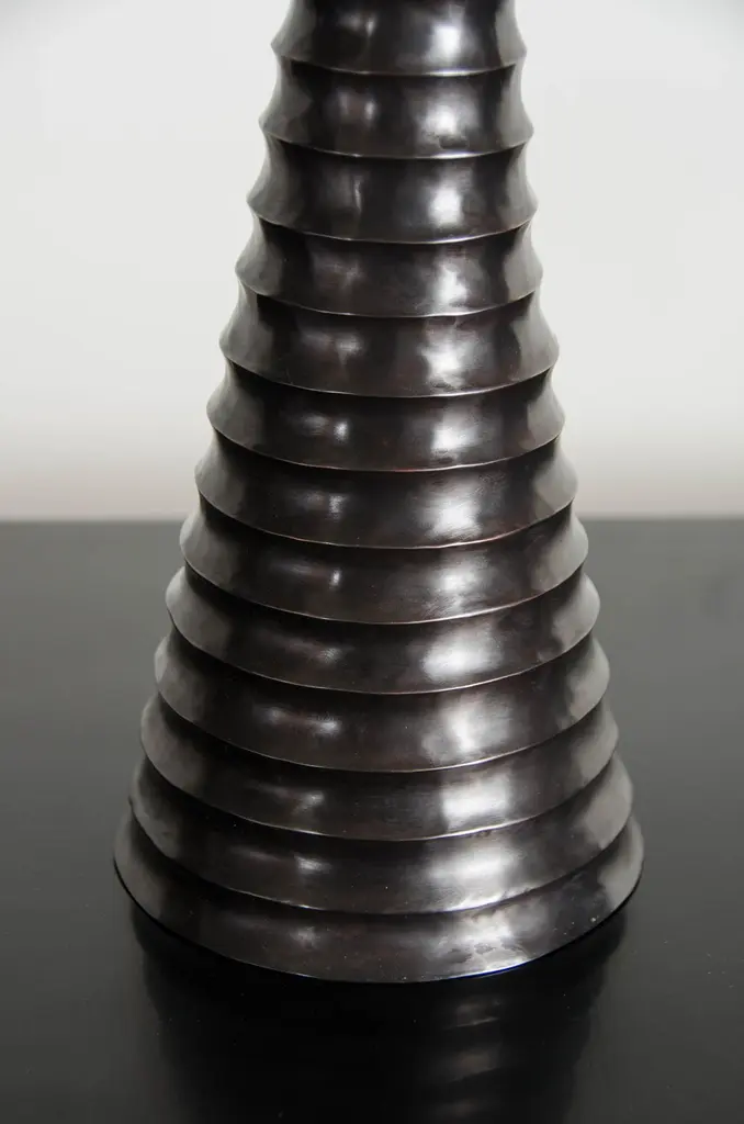 Tang candlestandBlack copperHand repousséContemporary Limited editionEach piece is individually crafted and is unique. Repoussé is the traditional art of hand-hammering decorative relief onto sheet metal. The technique originated around 800 BC between Asia and Europe and in Chinese historical context, it began early as the Han Dynasty (206BC-AD220). The technique involves using a hammer and various shaping tools.