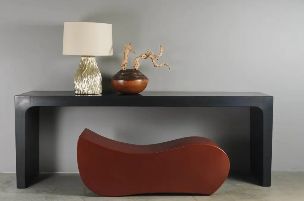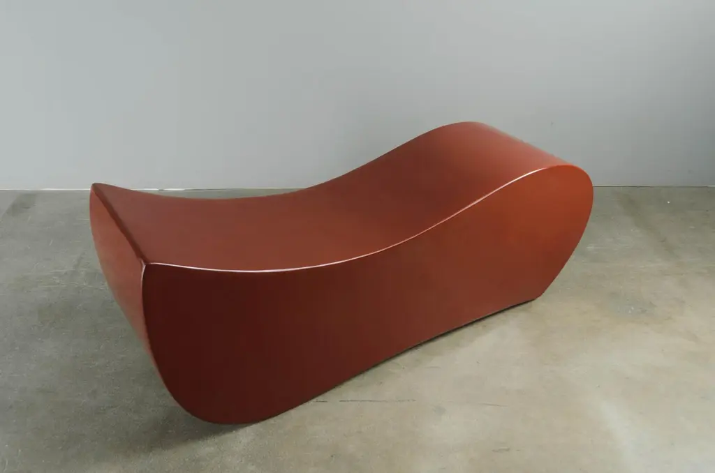 Yi BenchRed Bean Lacquer Hand RepousséMetal BaseContemporaryLimited Edition Lacquer is a technique that dates back to the Shang dynasty, circa 1600-1100 B.C. These pieces are made with at least 60 coats of organic lacquer. Each layer of lacquer is applied with a curing period of 24 hours in between so that it can dry. Each piece is individually crafted and is unique. Natural inclusions may show on the lacquer.