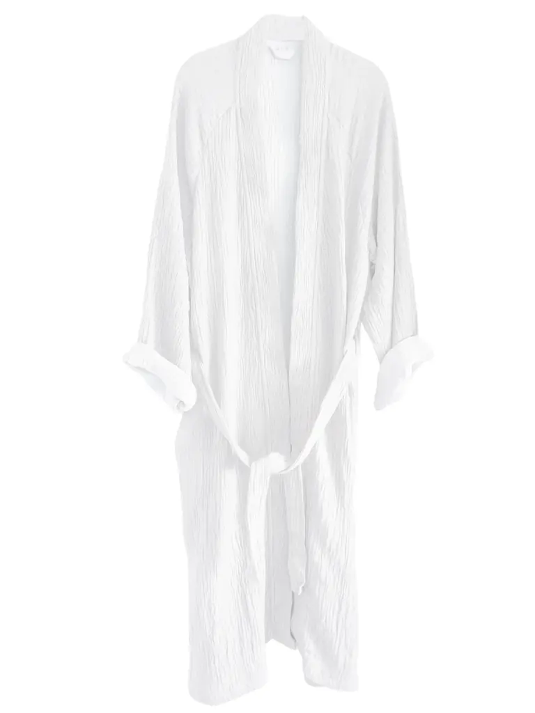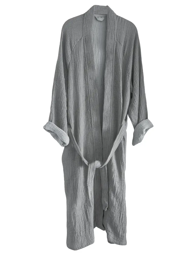 Experience ultimate comfort with our Crinkled Turkish Cotton Cuddle Robe. Crafted from soft crinkled cotton, this naturally breathable robe is designed for luxurious coziness. The crinkled yarns are intricately woven with two tones, creating the coziest and softest fabric, perfect for those moments of relaxation and cuddling up. And for your convenience, it's easily maintained with a simple machine wash. Material: 100% Cotton Gauze Unisex one size. Made in USA of Turkish Fabric. Color: Terracotta, Bright White, Natural Yellow, Charcoal Grey, Olive Green. Machine Wash Delicate with Like Colors, Tumble Dry, No iron.