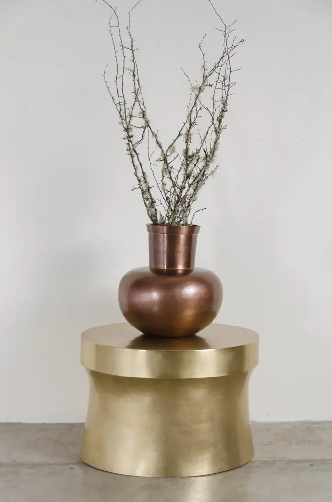 Dong Shan Table, Brass By Robert Kuo, Hand Repousse, Limited Edition