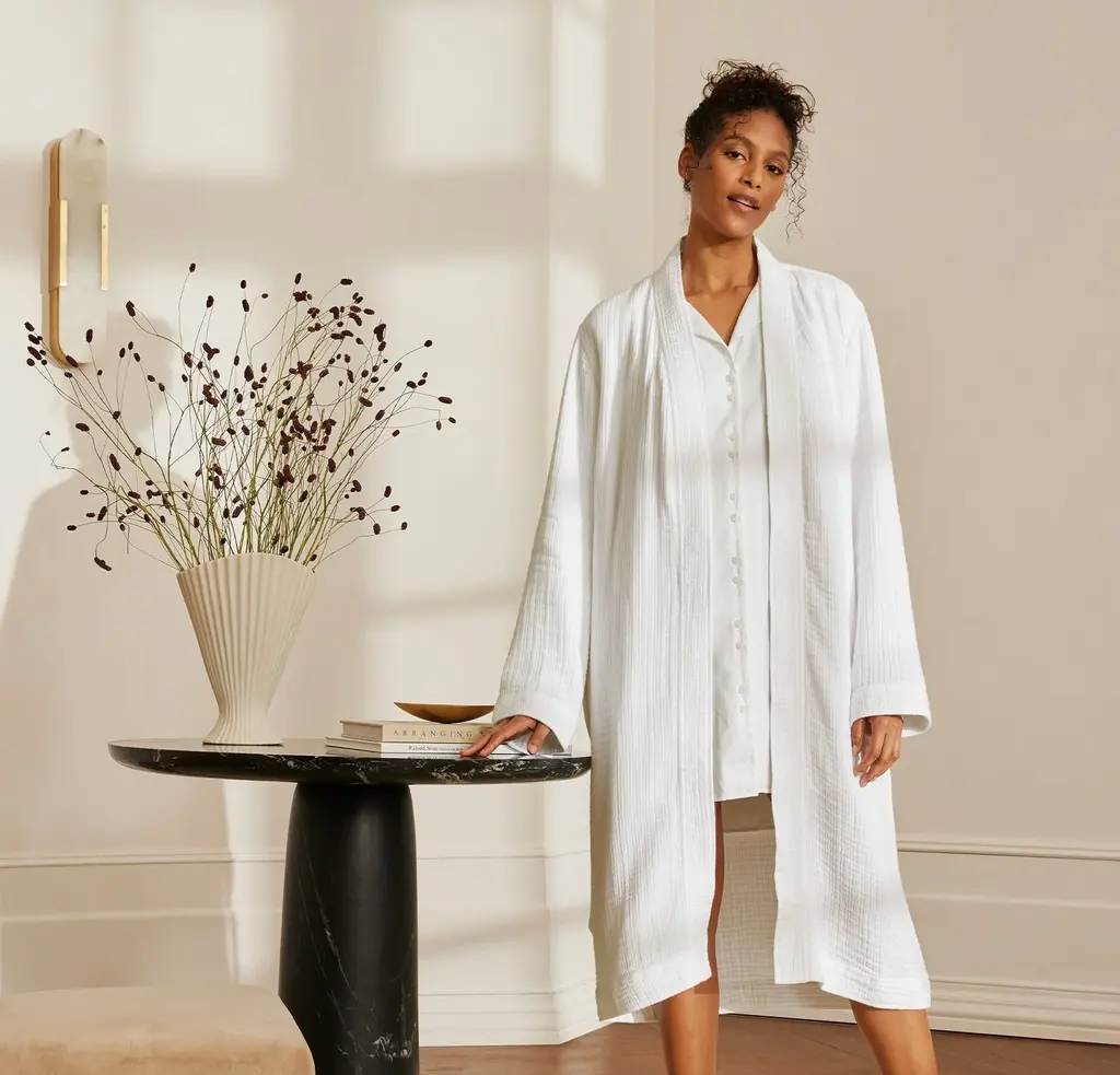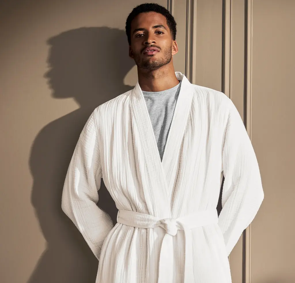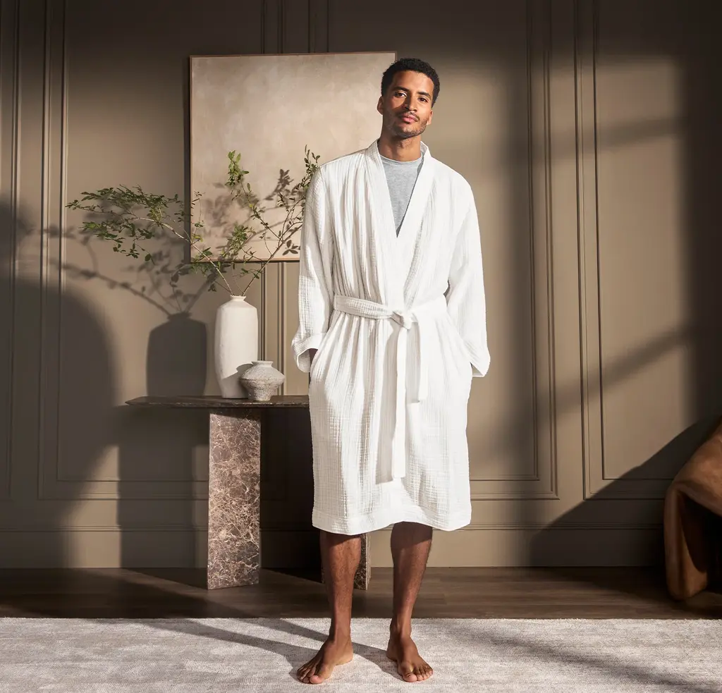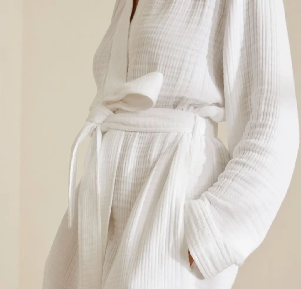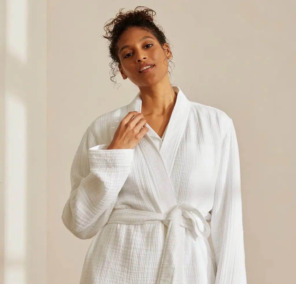 Crafted with the same cloud-like fabric as our instant bestseller, the Dream Bed Blanket, this unisex robe is exceptionally soft, and will quickly become a staple in your self-care routine. Its unique design starts with 4 lightweight layers of ultra-fine organic cotton, all pre-shrunk to bring natural folds with a distinct texture and supple stretch to each piece. A natural enzyme wash makes this cozy fabric exceptionally soft from the start, for an experience you’ll love wrapping up in, day and night. Please note, due to the individualized nature of our dyeing process, color may vary slightly.