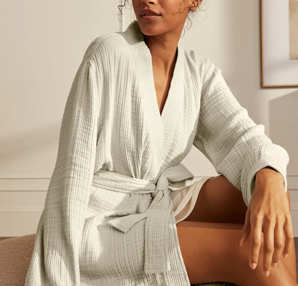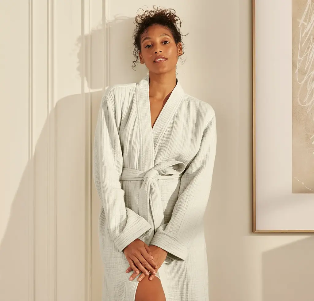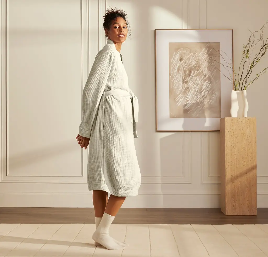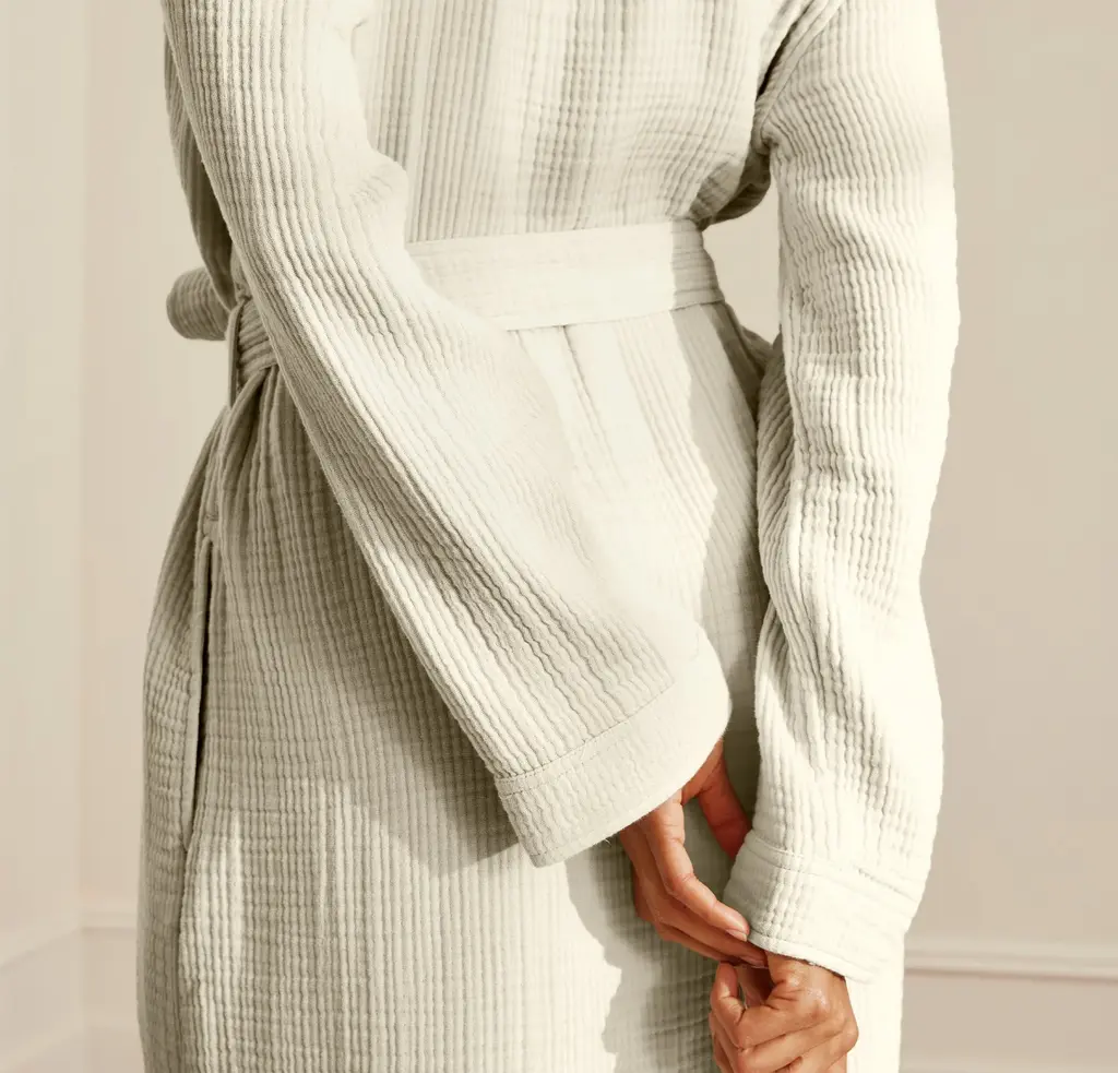 Crafted with the same cloud-like fabric as our instant bestseller, the Dream Bed Blanket, this unisex robe is exceptionally soft, and will quickly become a staple in your self-care routine. Its unique design starts with 4 lightweight layers of ultra-fine organic cotton, all pre-shrunk to bring natural folds with a distinct texture and supple stretch to each piece. A natural enzyme wash makes this cozy fabric exceptionally soft from the start, for an experience you’ll love wrapping up in, day and night. Please note, due to the individualized nature of our dyeing process, color may vary slightly.
