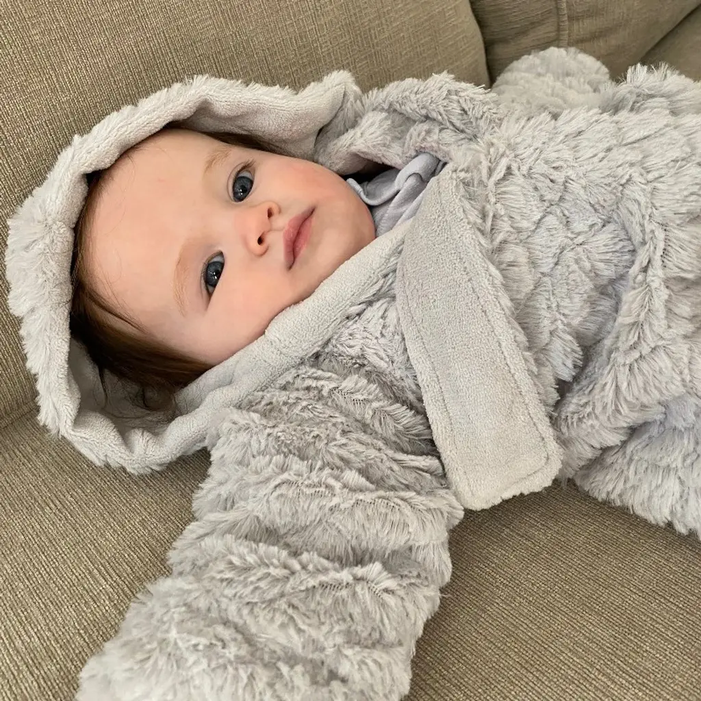 For snuggly comfort, Everyday Kids has your baby covered! Our unisex grey baby robe with hood is made of super soft faux fur on the outside and cozy plush fleece material on the inside to keep your baby warm and cozy at all time. Our comfy and snuggly fabric makes the perfect robe to wrap your baby in and make them feel warm and comfortable. Designed to maintain its softness even after multiple washes, our hooded baby robe feels like an extension of your hugs. This robe is made for babies 0-9 months, making it a perfect baby shower or welcome home gift.