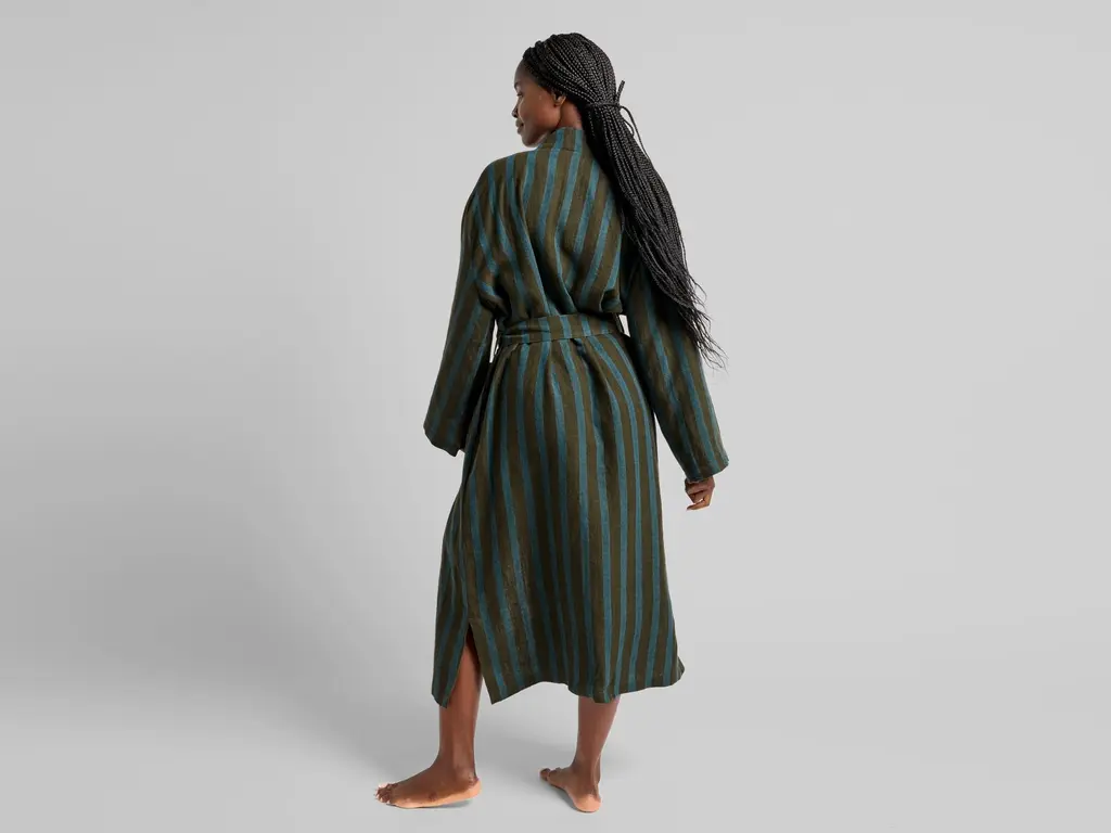 Linen Stripe Robe (Evergreen And Peacock)