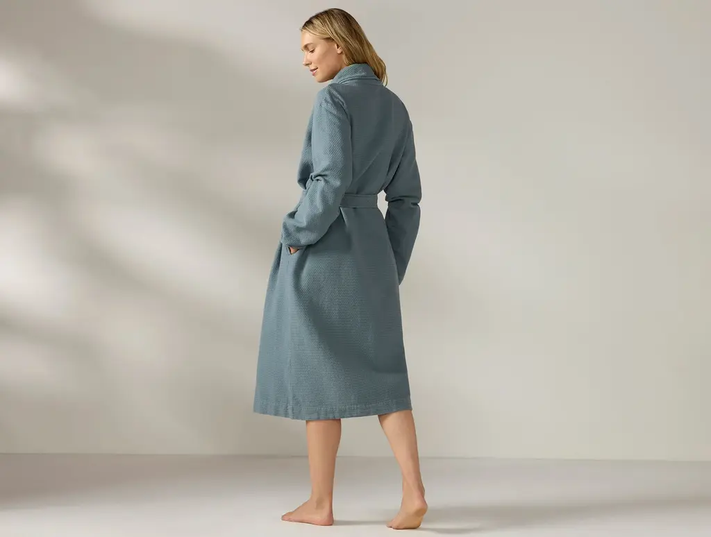 Feel effortlessly chic in this striped linen robe. Crafted from the finest flax for soft, lived-in texture and designed with a dropped shoulder and side slits for a relaxed, flattering fit. Wear it poolside, oceanside, or tubside and dont forget to layer alongside our striped beach or bath towels to make it amoment.