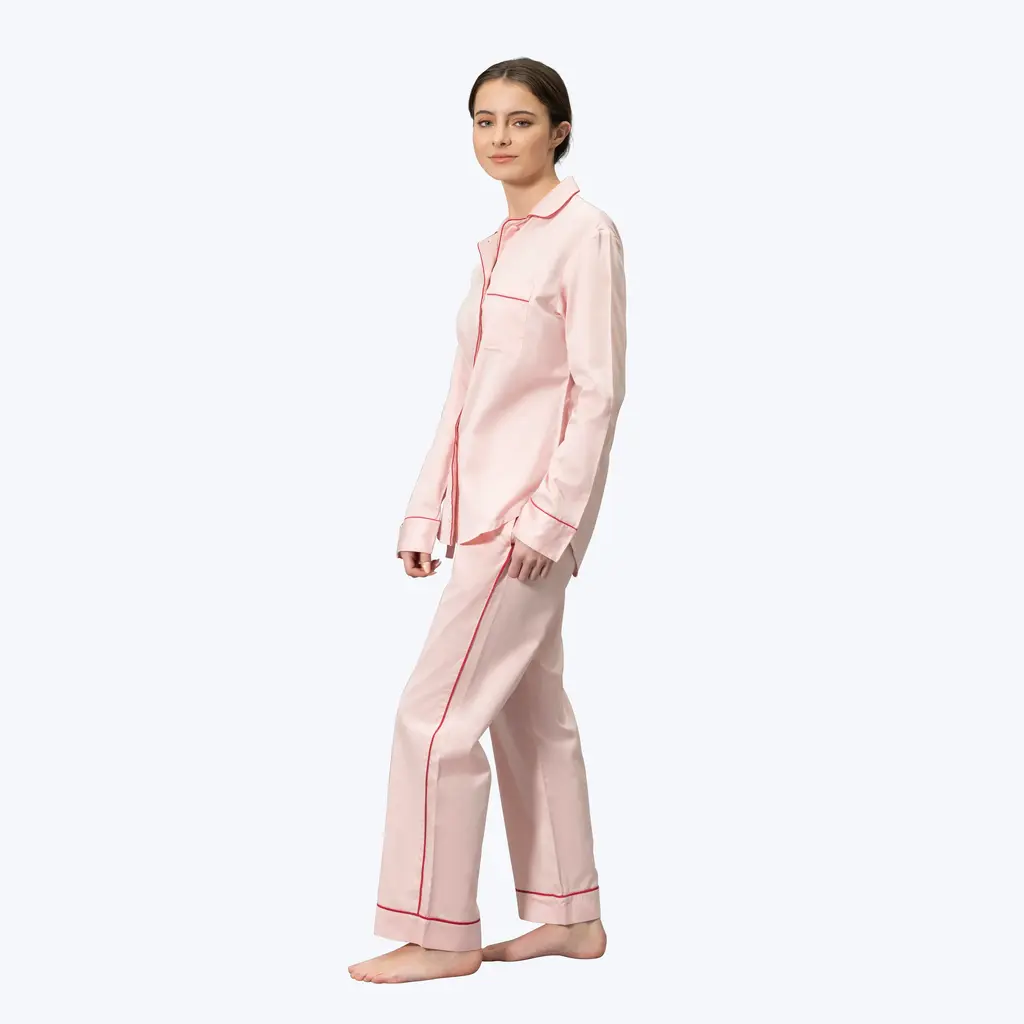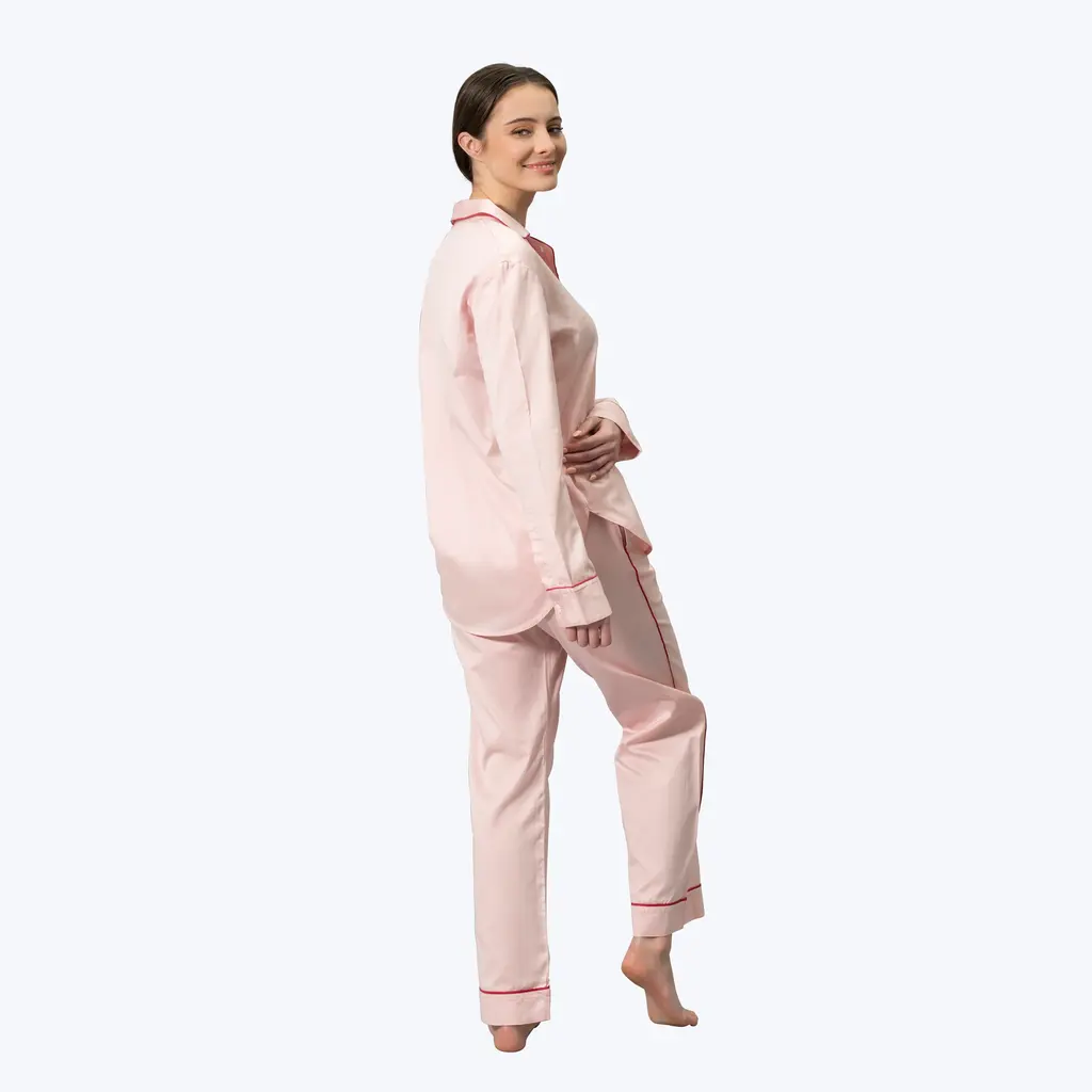 Crafted from luminous Nocturne sateen, we’ve combined the luxury of Matouk sheeting with the comfort of your favorite lived-in dress shirt. The top features natural corozo buttons, piped details, and a scooped hem. The drawstring style with a touch of elastic in the back for extra comfort. Wear them to relax in style at home, or dress them up for days and nights out.