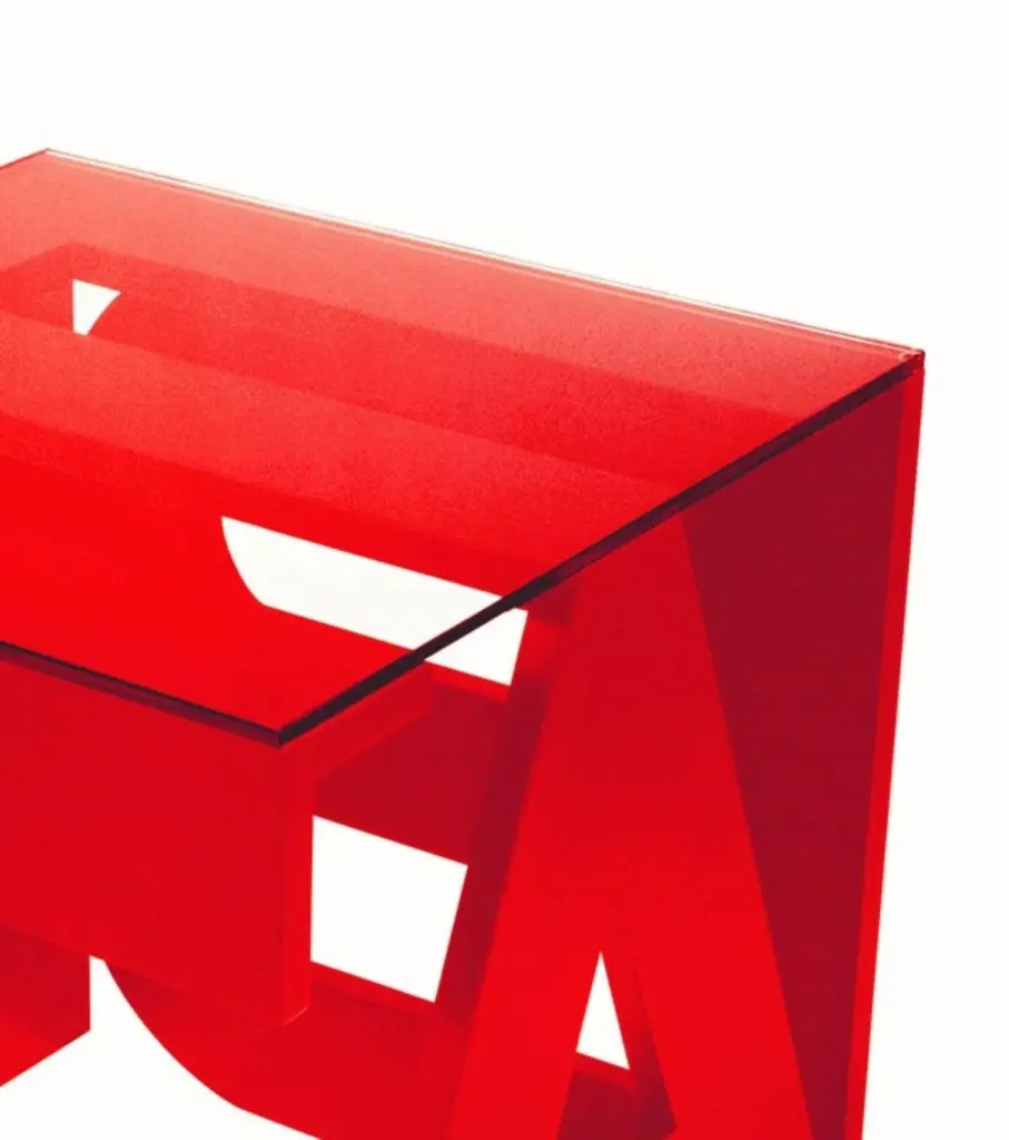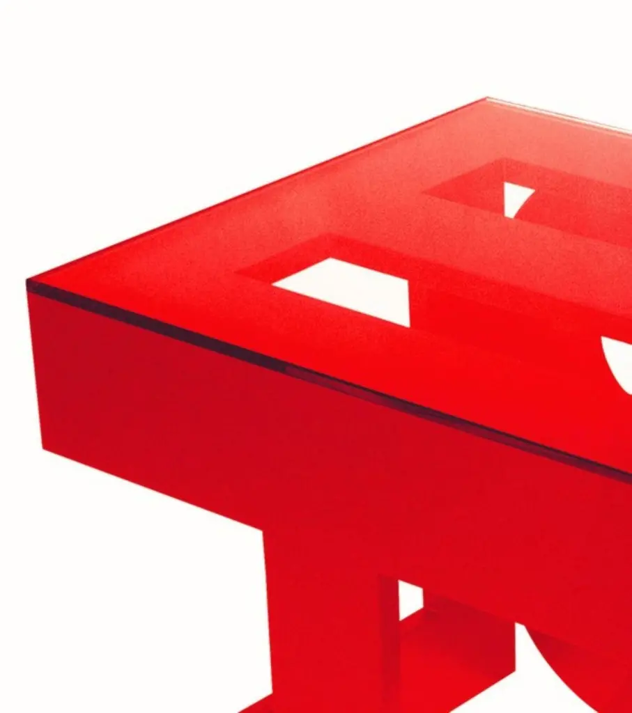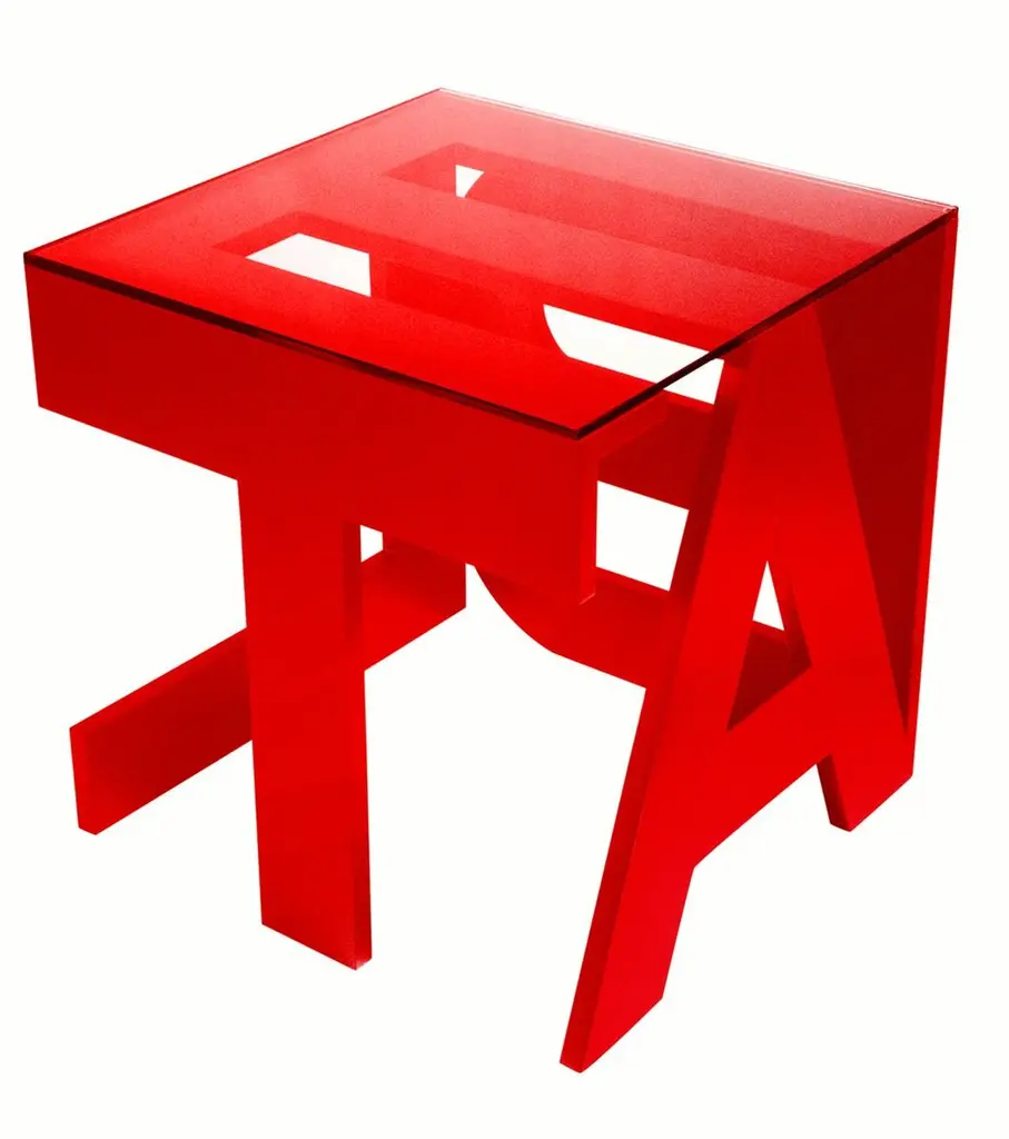 Table Table by Roberta RampazzoCurrent ProductionDimensions: W 50 x D 50 x H 52 cmMaterials: MDF 20mm, Glass.With the letters of the word "table", the designer created a funny table with an unique design which brings innovation and modernity to the space. This means that the user can play with the table. Made with certified MDF. Final painting is with lacquer in different collors making it possible to decorate in accordance with personal styles.With more than 20 years on the market, Roberta has her own line of furniture as well as for high end stores such as Firma Casa, Mosarte, Objekto (France), Vermeil and others.Her work has been published in the most important design magazines and websites in more than 30 countries like England, The United States, France, Germany, Italy, Denmark and Japan. Also being recognised in important design awards including A Design Award and German Design Award Nominee. Her pieces are currently being sold in high end shops in Brazil, France, England, Australia, Spain and others countries. Currently living in London the designer is continuing her creative work with new products and companies.