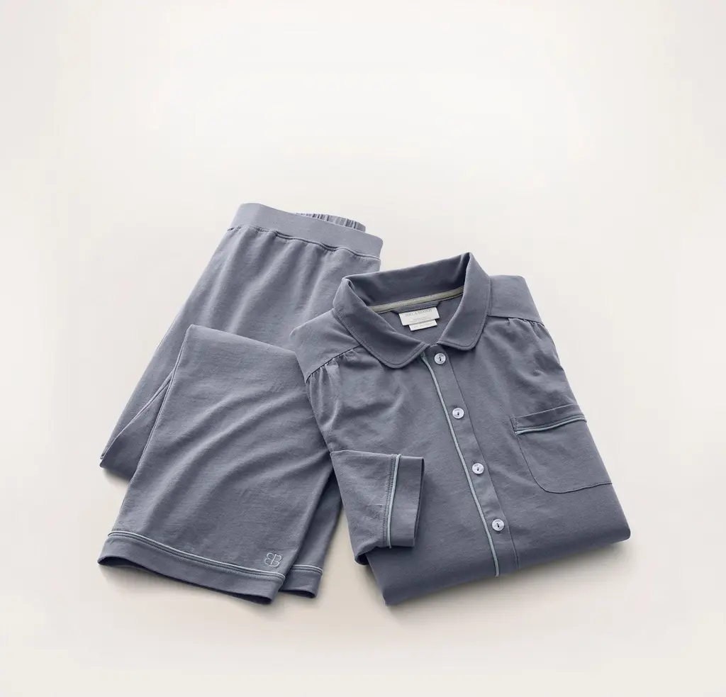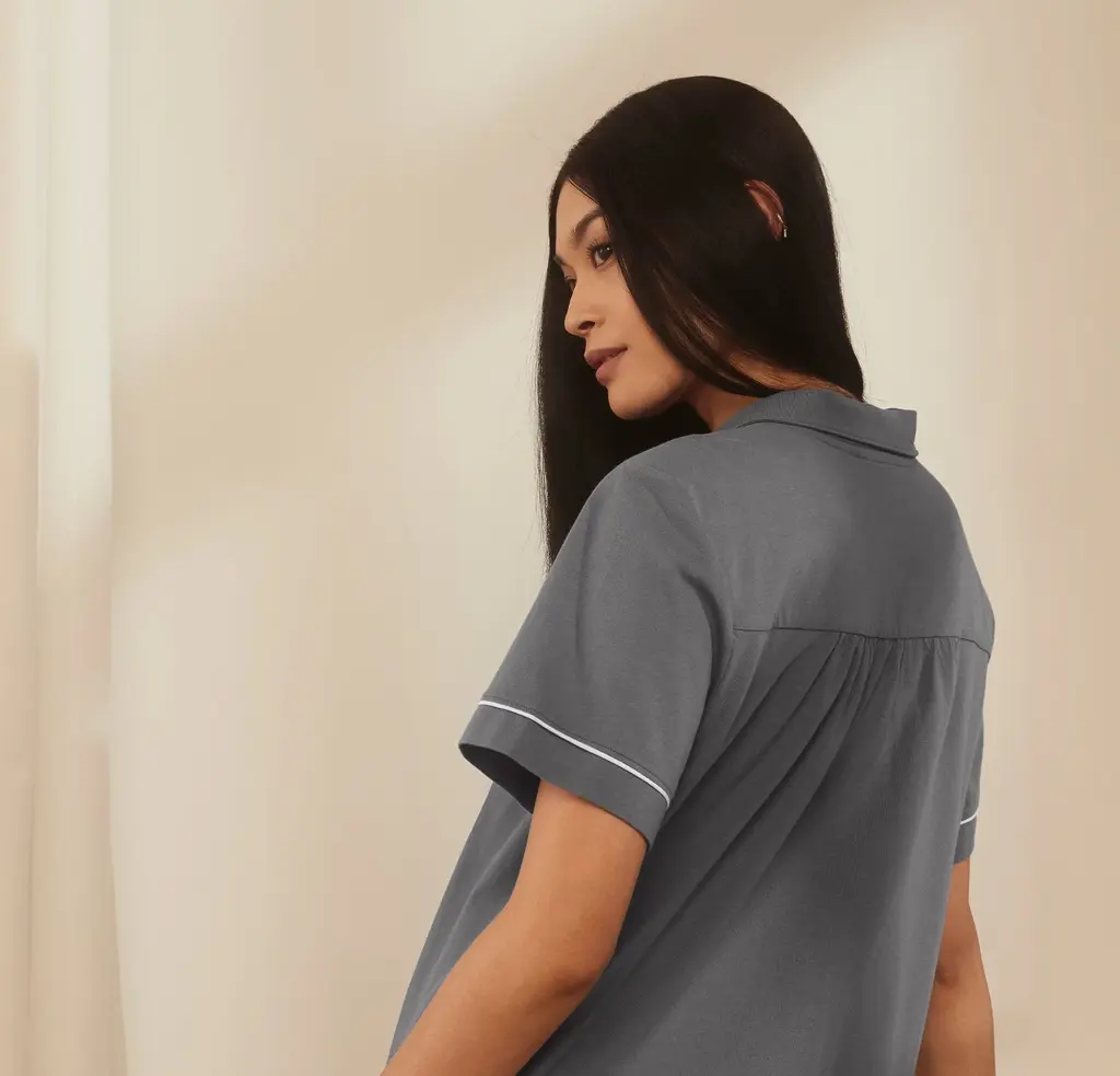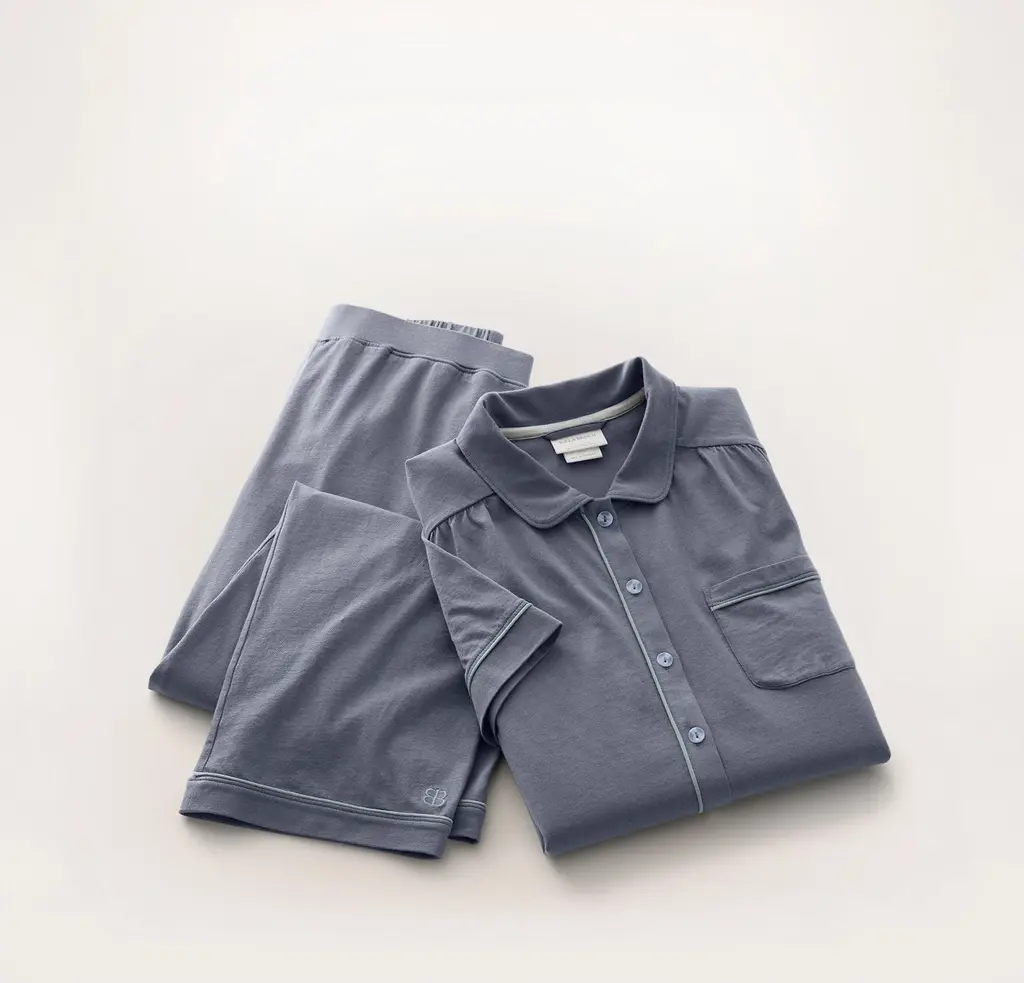The familiar comfort of your favorite lived-in t-shirt, now elevated for an exceptional experience. We crafted a knit fabric unlike any other, using only the highest quality, 100% organic cotton threads to create a natural softness and stretch that never clings to the body. The fabric is made even softer with our Luxury Soft-Wash—a gentle process that uses natural enzymes to relax the fibers, drawing out a more sumptuous feel. The Fit Relaxed yet feminine – we recommend sizing down The Feel The softest knit with the most naturally sumptuous hand-feel The Look Effortless and sophisticated with contrast rolled-edge piping
