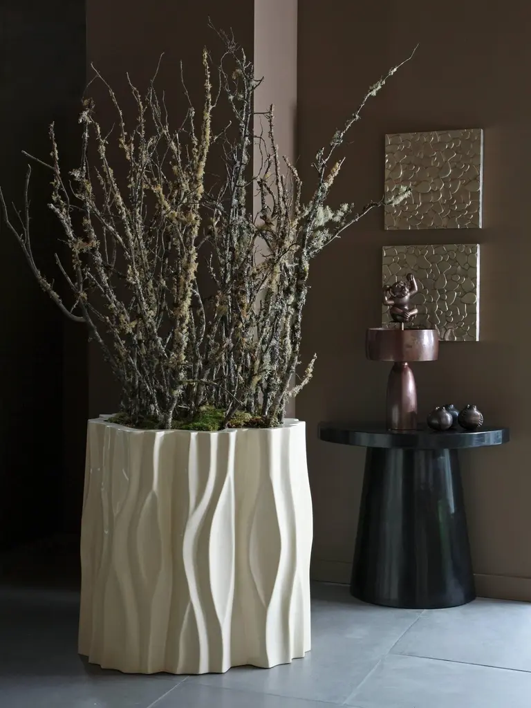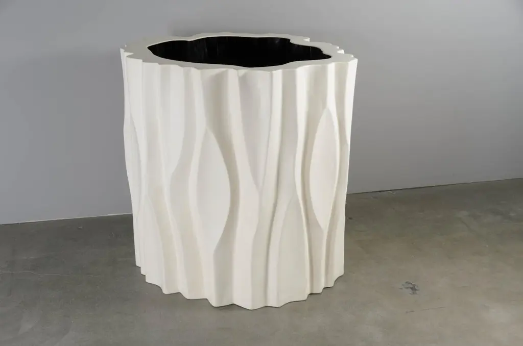 Tree Trunk pot largeCream lacquerHand repousséSteel baseLimited editionLacquer is a technique that dates back to the Shang dynasty, circa 1600-1100 B.C. These pieces are made with at least 60 coats of organic lacquer. Each layer of lacquer is applied with a curing period of 24 hours in between so that it can dry. Each piece is individually crafted and is unique. Natural imperfections and inclusions may show on the lacquer.