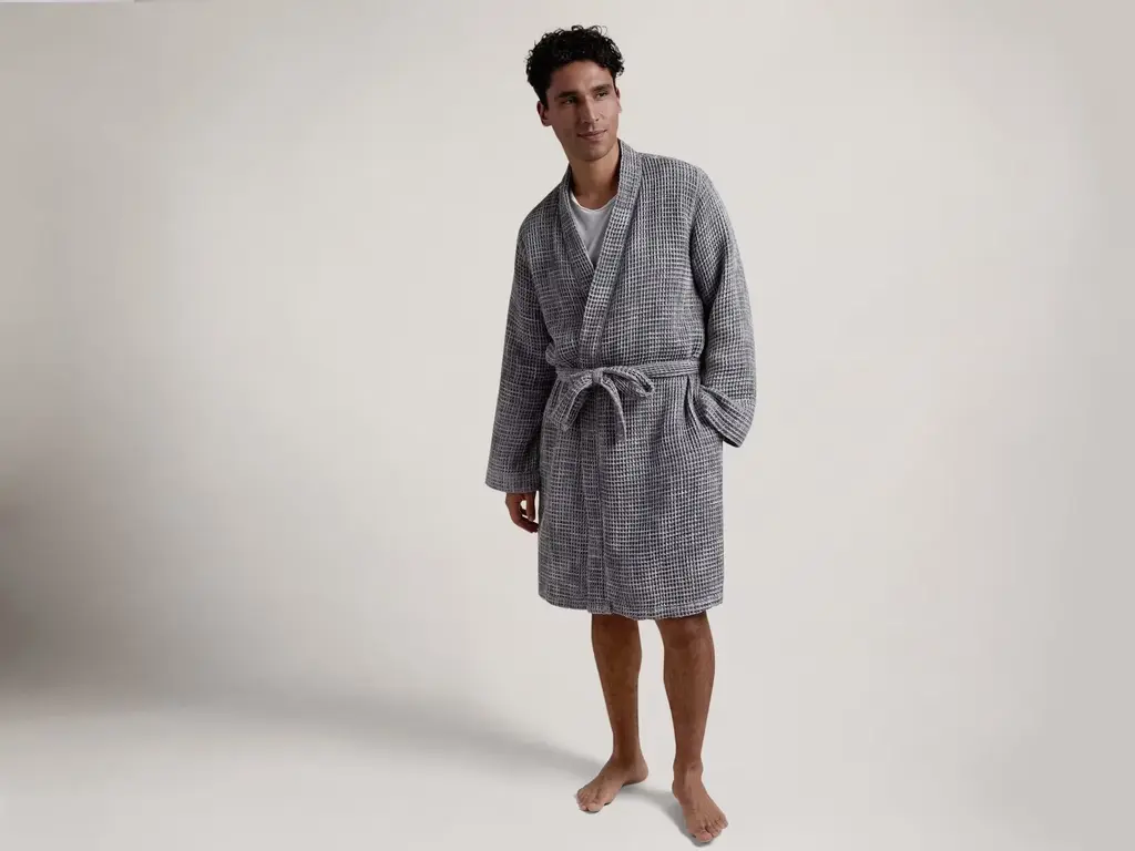 Relax in this lightweight, softly textured bathrobe inspired by the world's finest spas. Features two hip pockets, a folded collar and secure waisttie.